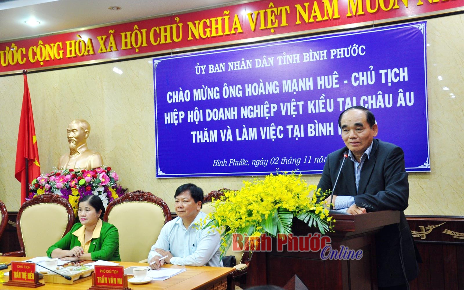 Tiến sĩ Hoàng Mạnh Huê, Chủ tịch Hiệp hội Doanh nghiệp Việt kiều tại châu Âu phát biểu tại buổi làm việc