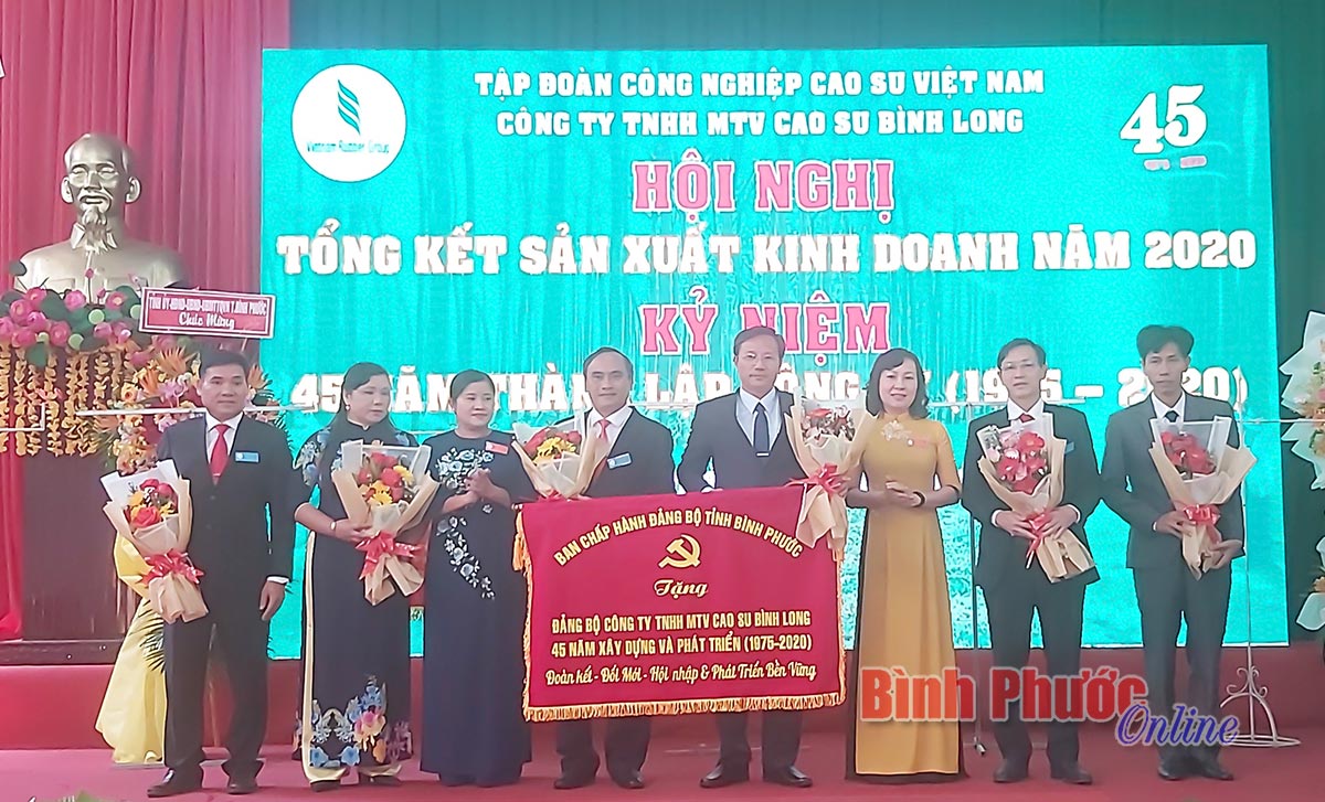 Nhân 45 năm kỷ niệm Ngày thành lập Công ty TNHH MTV Cao su Bình Long, Đảng bộ tỉnh Bình Phước đã tặng công ty bức trướng “Đoàn kết - đổi mới - hội nhập và phát triển”.