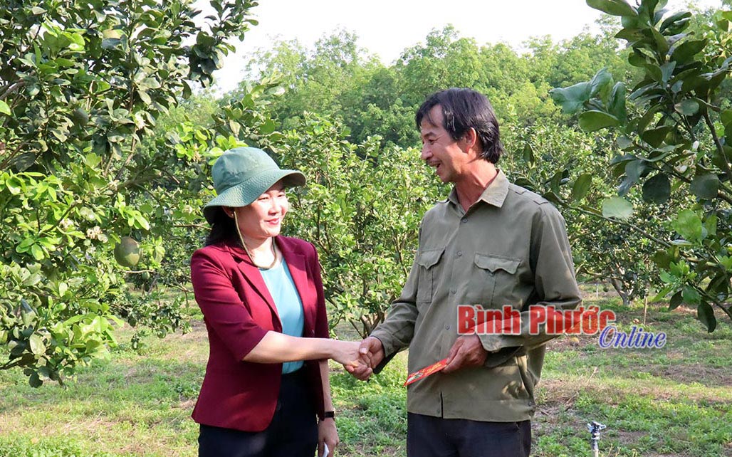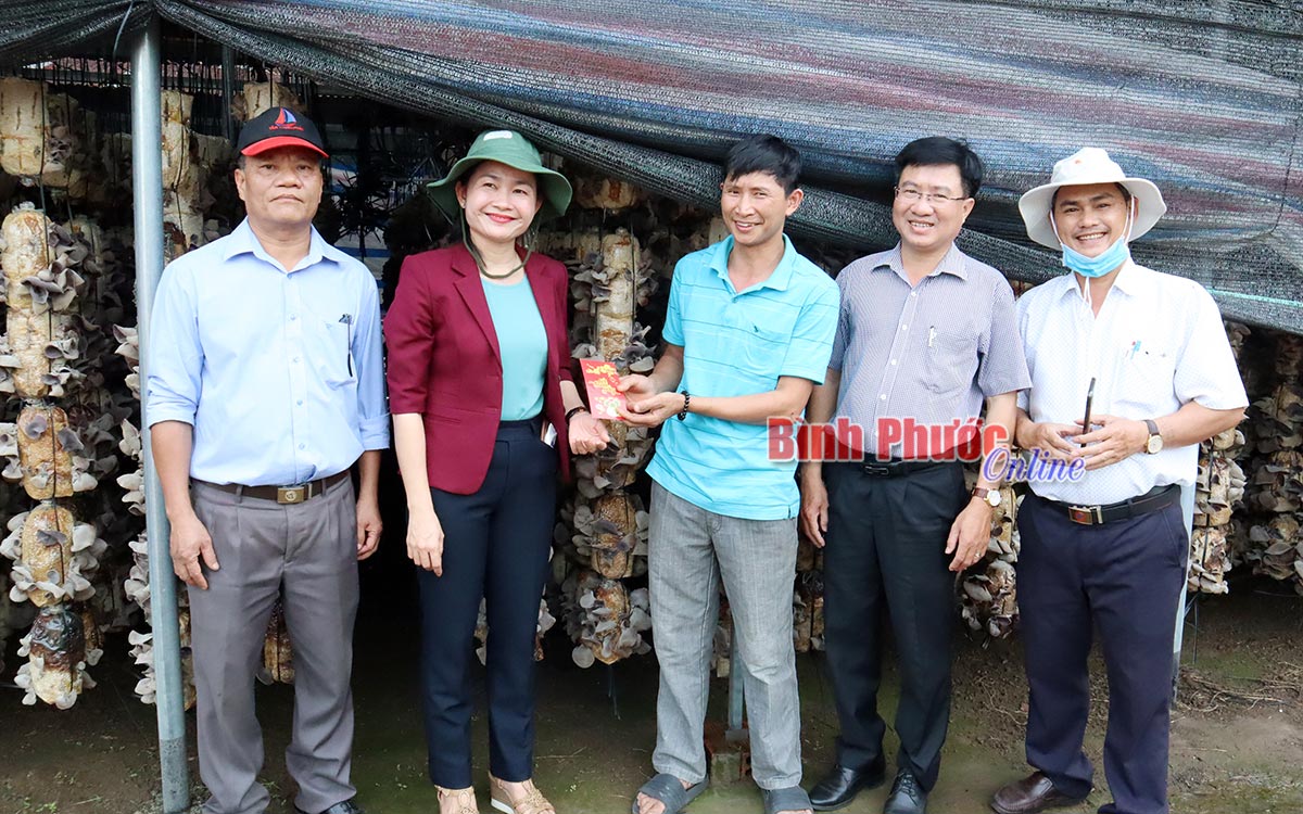 Lãnh đạo thành phố Đồng Xoài lì xì động viên nông dân sản xuất kinh doanh giỏi thành phố đầu năm mới 2021
