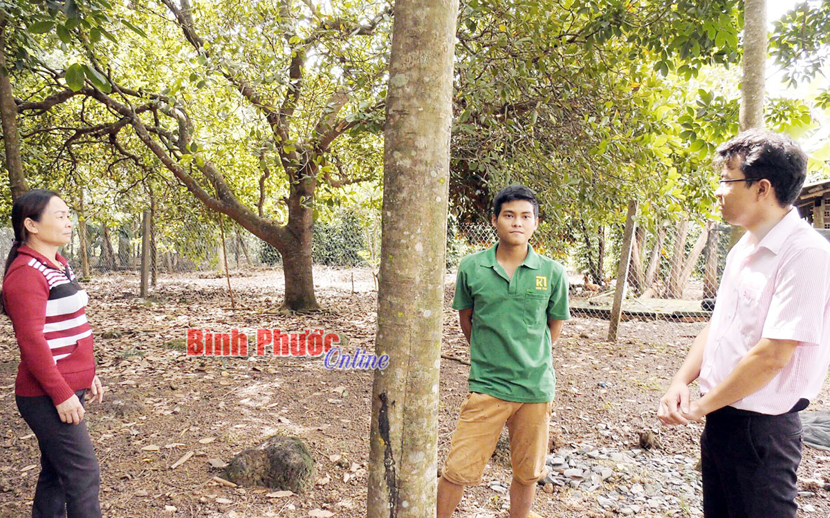 Cán bộ NHCSXH huyện Đồng Phú kiểm tra việc sử dụng vốn vay của khách hàng trên địa bàn huyện