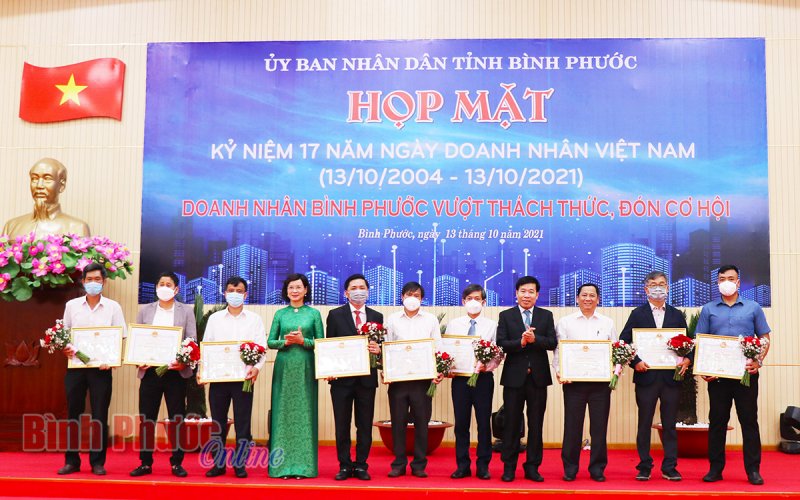 Họp mặt kỷ niệm 17 năm Ngày Doanh nhân Việt NamBPO - Với chủ đề “Doanh nhân Bình Phước vượt thách thức, đón cơ hội”, sáng nay 13-10, Tỉnh ủy, HĐND, UBND, Ủy ban MTTQ Việt Nam tỉnh tổ chức họp mặt kỷ niệm 17 năm Ngày Doanh nhân Việt Nam (13-10-2004 - 13-10-2021).