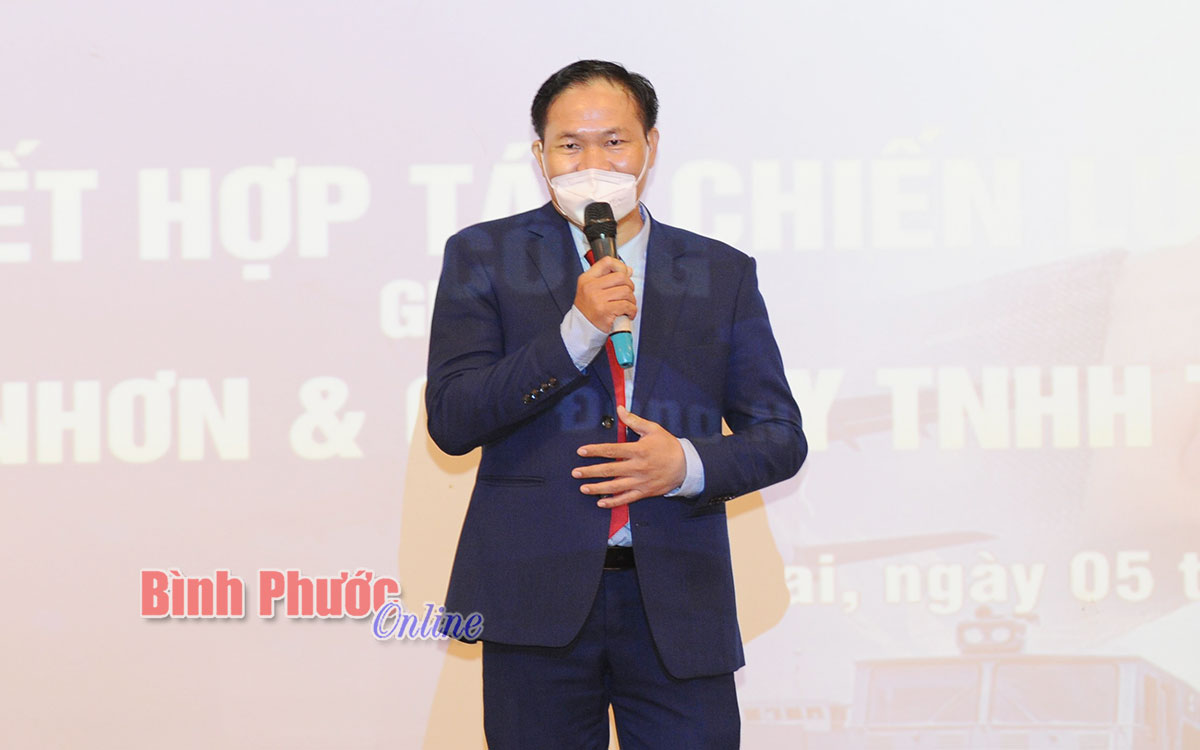 Ông Đặng Văn Điềm, Chủ tịch Hội Doanh nhân trẻ tỉnh Đồng Nai, Chủ tịch Hội đồng quản trị Công ty cổ phần Thông Quan, Giám đốc Công ty TNHH Thông Quan phát biểu tại lễ ký kết