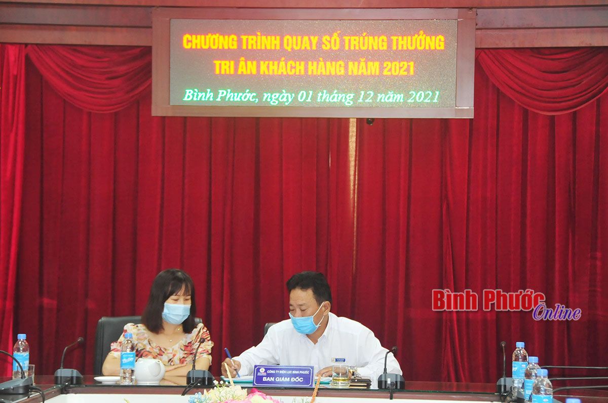 Quang cảnh quay số trúng thưởng tại điểm cầu Công ty Điện lực Bình Phước