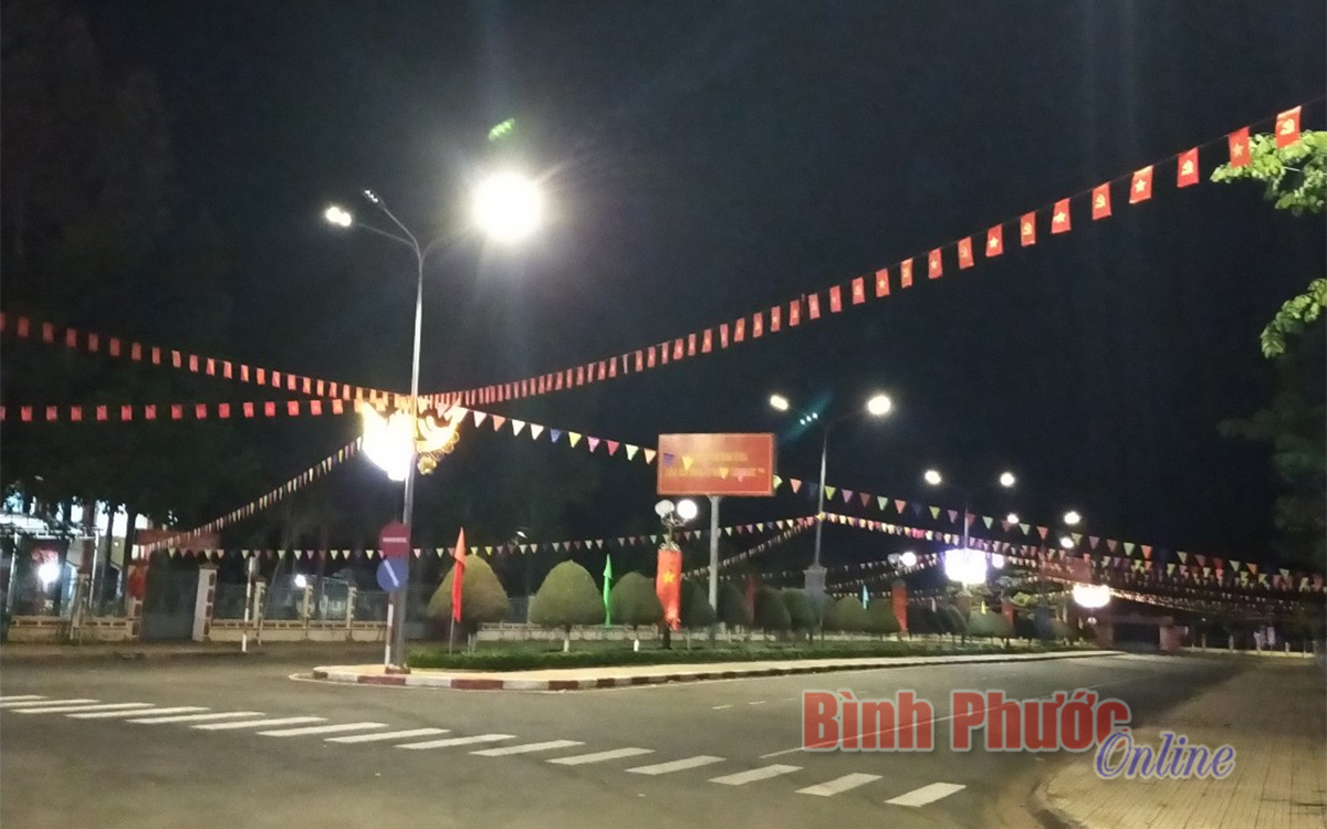 Các tuyến đường tại Trung tâm hành chính huyện Đồng Phú được trang trí đẹp mắt trong những ngày tết