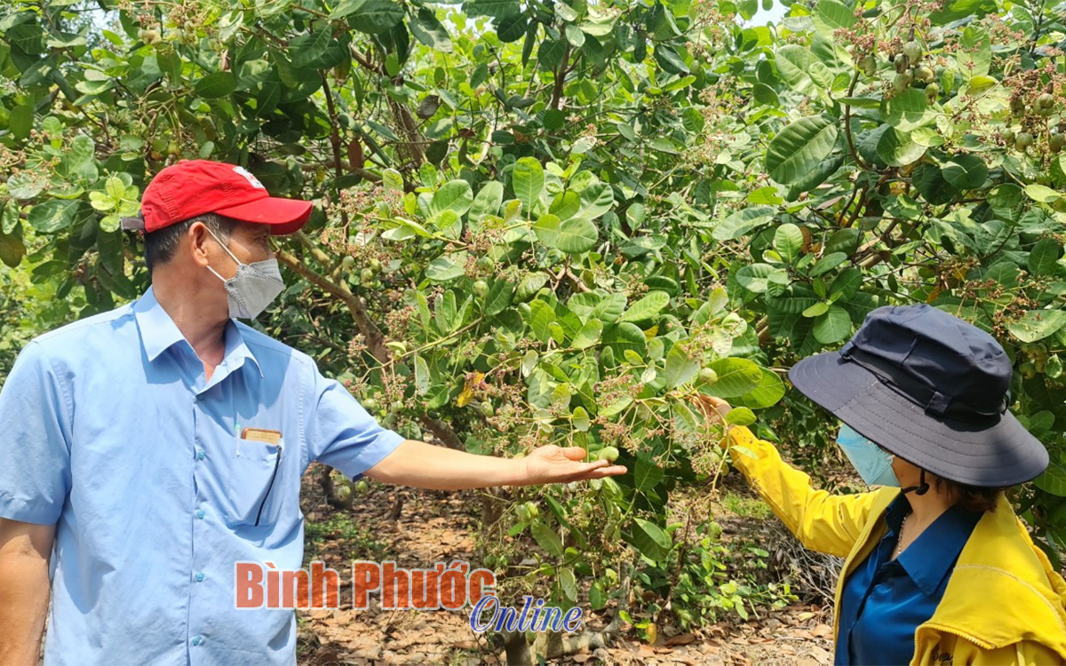 Nhờ xử lý phun xịt thuốc kịp thời sau mỗi trận mưa trái mùa, vườn điều của gia đình ông Nguyễn Xuân Lục ở thôn Phu Mang 3, xã Long Hà, huyện Phú Riềng vẫn đậu trái ước đạt từ 50-70%