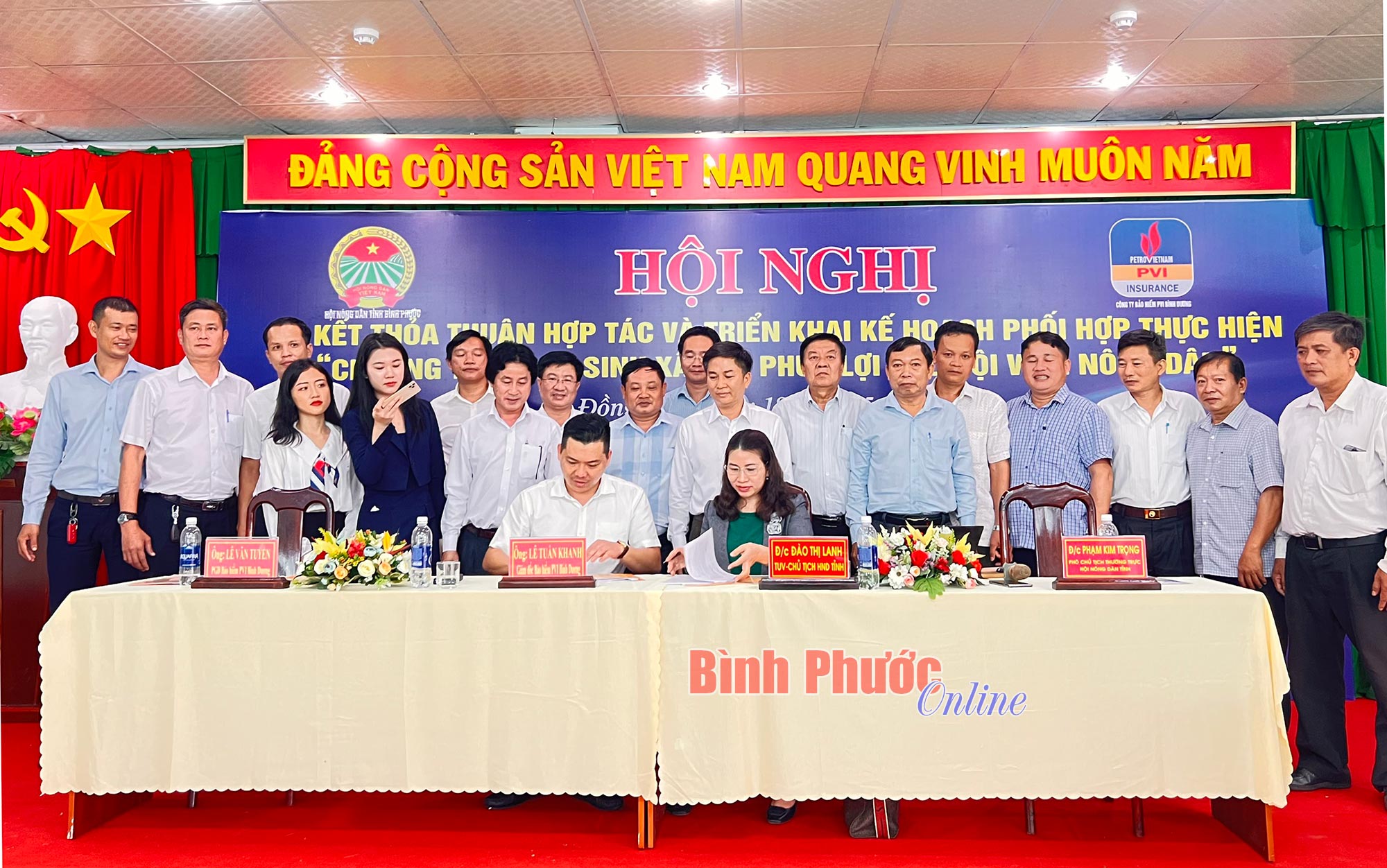 Lãnh đạo Hội Nông dân tỉnh Bình Phước và Công ty Bảo hiểm PVI Bình Dương ký kết thỏa thuận hợp tác và triển khai kế hoạch phối hợp thực hiện Chương trình an sinh xã hội, phúc lợi cho hội viên nông dân