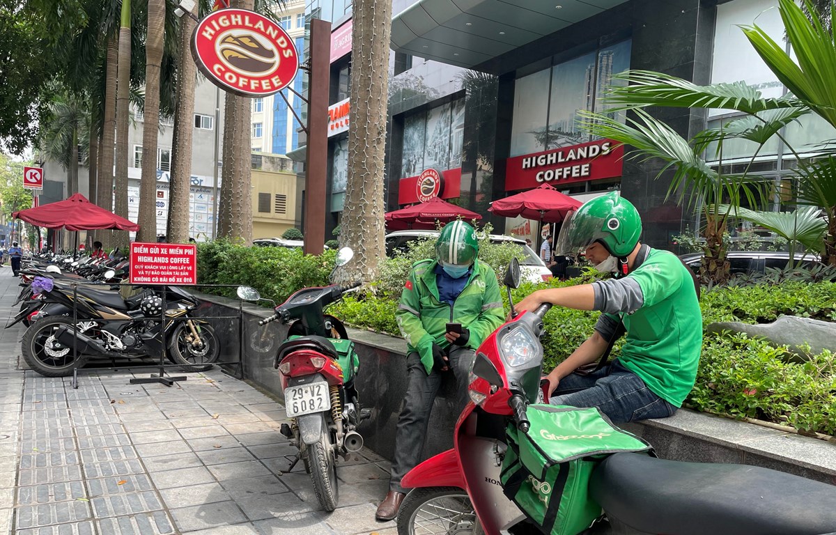 Anh Xuân Tùng, một shipper Grab vừa thực hiện chuyến giao hàng cuối cùng trước giờ nghỉ trưa. Tổng cộng từ 7 giờ sáng đến 12 giờ trưa anh chạy được 10 đơn, thu 155.000 đồng. Trừ đi tiền xăng, tiền điện thoại anh lãi khoảng 80.000 đồng, chỉ bằng một nửa năm ngoái.