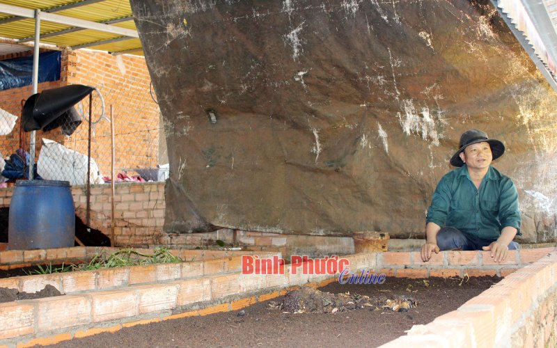 Ông Trần Minh Xuân, ấp Sóc Trào A, xã Tân Lợi chủ động nuôi trùn quế để cung cấp nguồn phân hữu cơ bón cây sầu riêng
