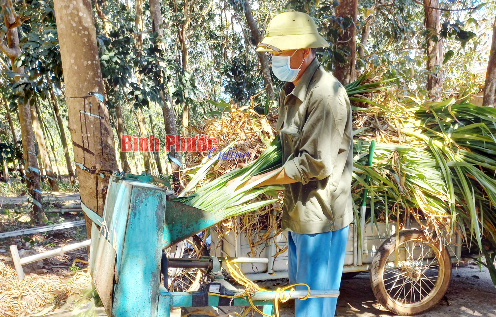Hiện nay, phần lớn hợp tác xã, tổ hợp tác trên địa bàn tỉnh hoạt động hiệu quả đều thuộc lĩnh vực nông nghiệp. Trong ảnh: Ông Bùi Quốc Hai, thành viên Tổ hợp tác chăn nuôi dê xã Hưng Phước (huyện Bù Đốp) đưa cỏ vào máy băm để làm thức ăn cho hơn 100 con dê
