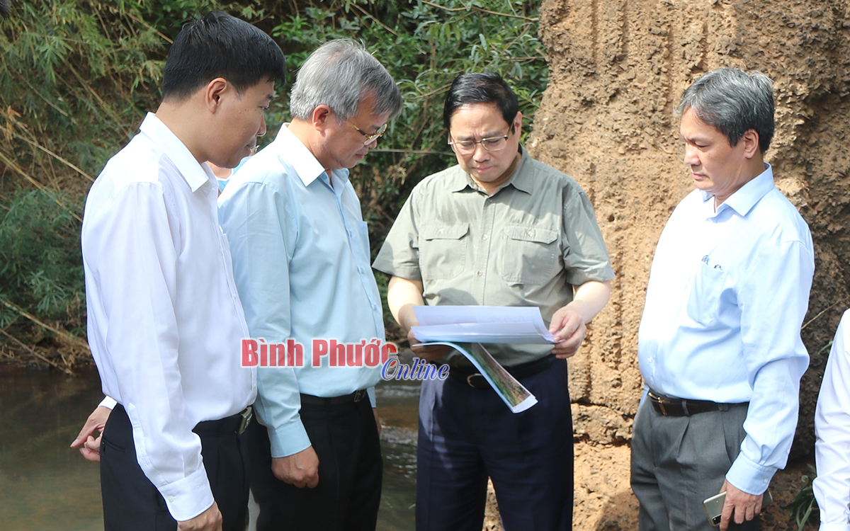Thủ tướng Phạm Minh Chính kiểm tra thực địa khu vực cầu Mã Đà trong chuyến công tác tại Bình Phước ngày 20-3-2022