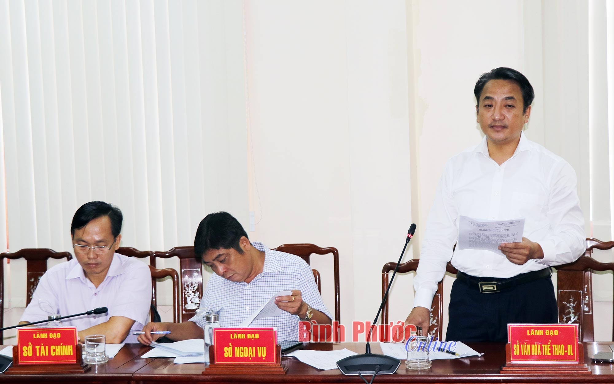 Tỉnh ủy viên, Giám đốc Trung tâm Xúc tiến đầu tư, thương mại và du lịch Trần Quốc Duy báo cáo chương trình, kế hoạch xúc tiến tại buổi làm việc