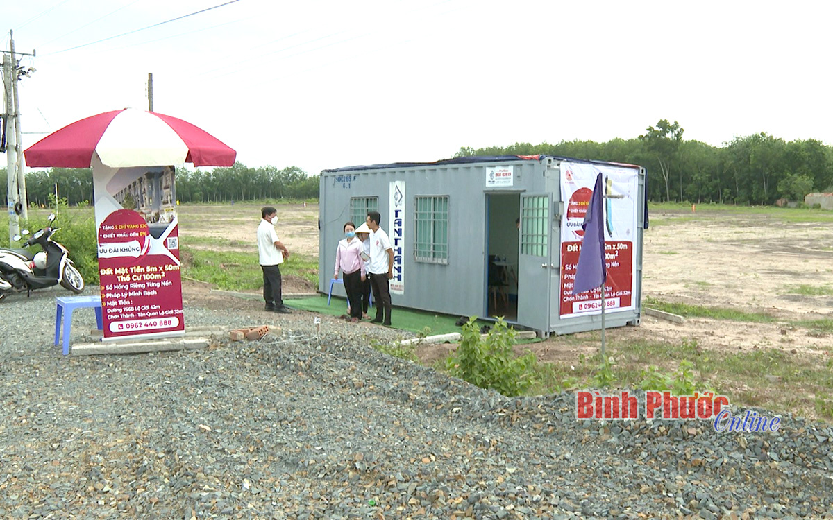 Một công ty bất động sản dùng thùng xe container làm nơi giao dịch đất đai tại huyện Chơn Thành