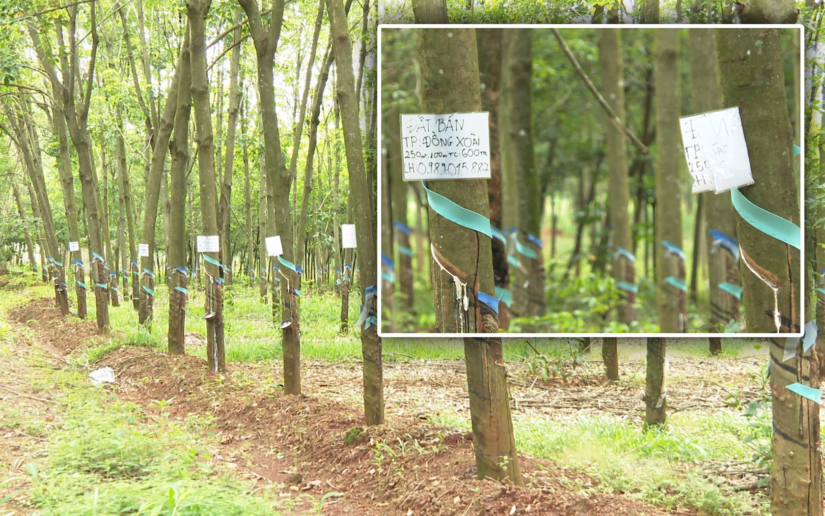 Những cây cao su của người dân xã Tân Lợi, huyện Đồng Phú được cò đất tận dụng để quảng cáo bán đất