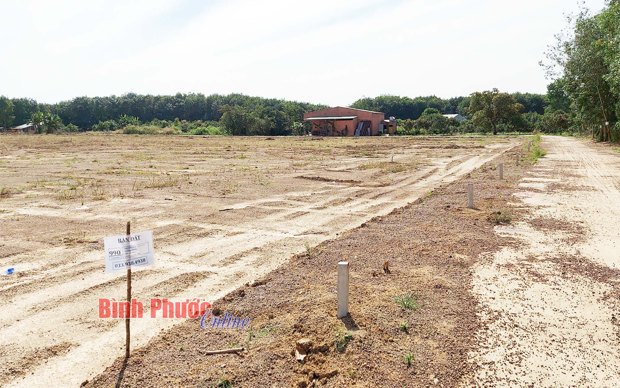 Ở đâu có đường, thậm chí chỉ thể hiện đường trên sổ thì ở đó có dự án phân lô, bán nền, không cần biết dự án đó có được cấp phép hay không. Đơn cử, ngày 21-2-2022, trên mạng xã hội xuất hiện clip bán đất như bán rau ở chợ của Công ty TNHH Địa ốc Nam Khương (tỉnh Bình Dương) tại xã Lộc Khánh, huyện Lộc Ninh. Tuy nhiên, theo tìm hiểu của phóng viên, khu đất này vốn là đất nông nghiệp trồng cây lâu năm, người mua sau đó đã tách thửa, phân lô. Khu đất gọi là dự án Lộc Khánh rộng khoảng 1 ha thuộc tổ 5, ấp Đồi Đá, về hạ tầng vẫn chưa có gì, chỉ là hàng rào kẽm gai được dựng lên và một đống đá nhỏ, ụ đất chôn cọc chia lô để bán với mỗi lô có chiều ngang 5m. Vị trí đất này cách UBND xã Lộc Khánh khoảng 6km. Tại khu vực này, người dân sinh sống khá thưa thớt.