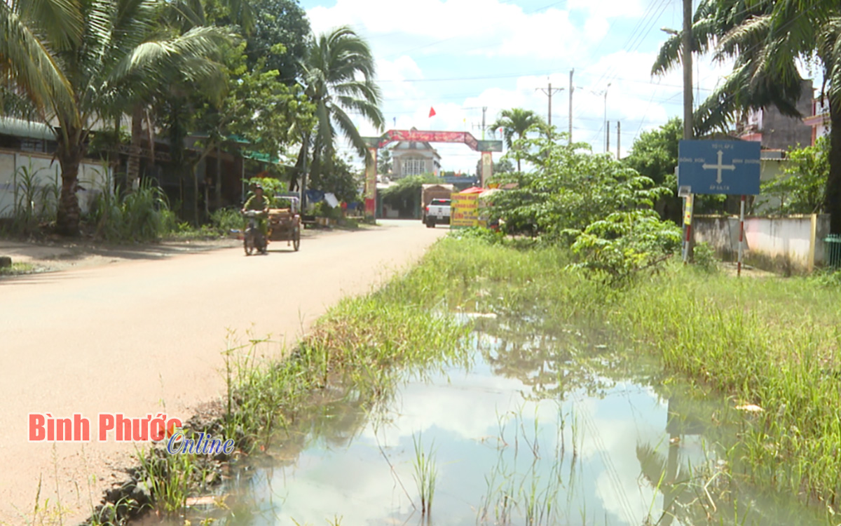 Trước cửa Nông trường cao su Tân Lập thi công dở dang, nay nước đọng thành ao, tiềm ẩn nguy cơ tai nạn giao thông