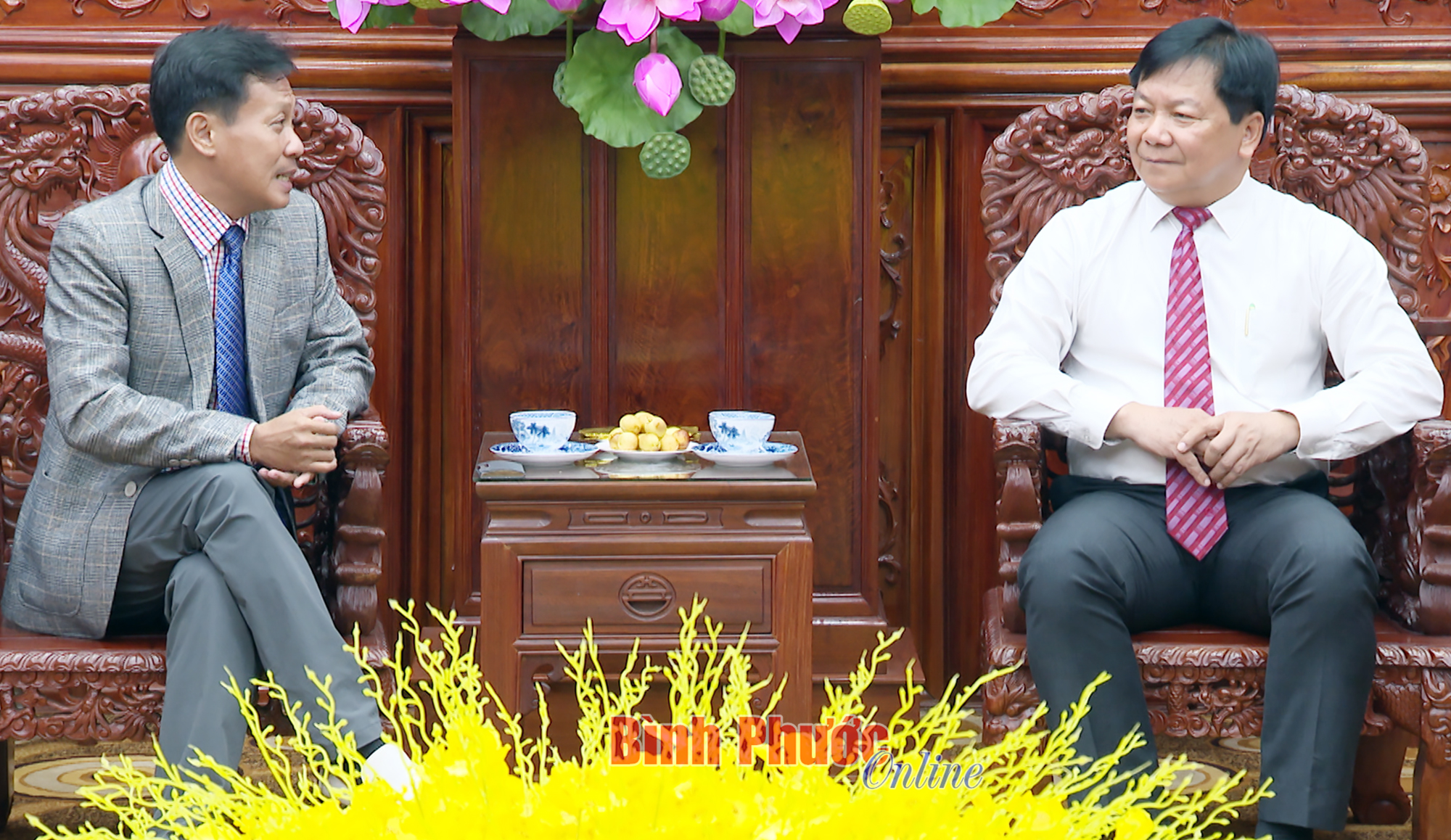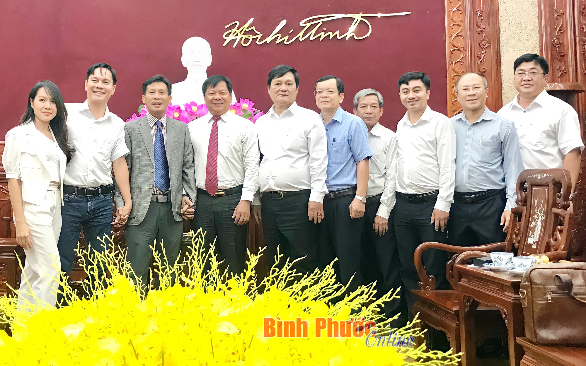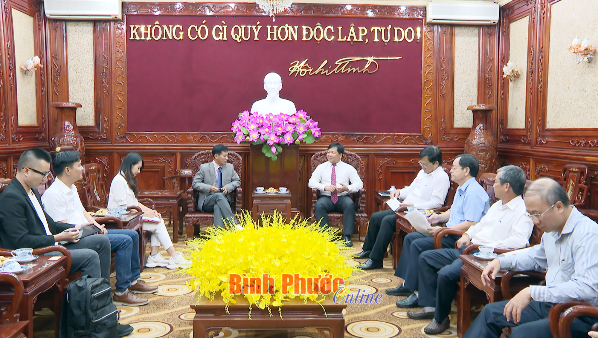 Lãnh đạo UBND tỉnh Bình Phước và lãnh đạo Tập đoàn CBD ROBOTICS trao đổi các vấn đề liên quan đến đề xuất thực hiện dự án