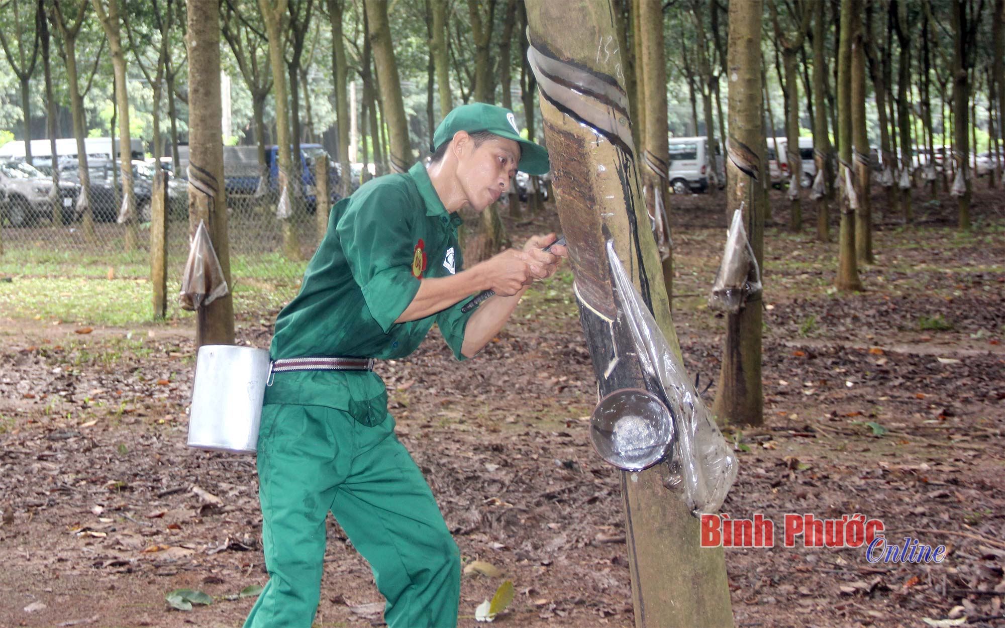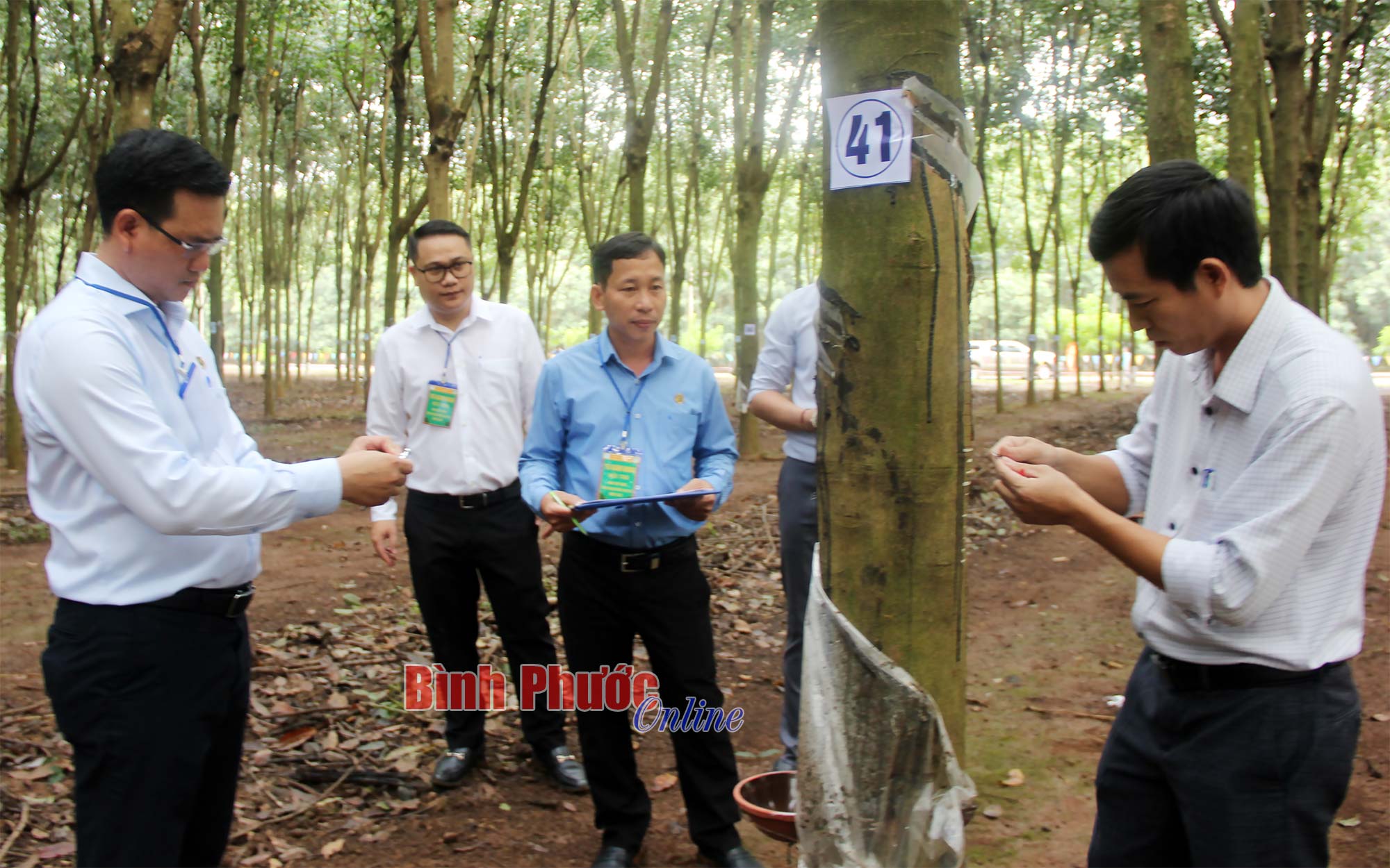 Các thí sinh tranh tài thực hành thi cạo mủ cao su