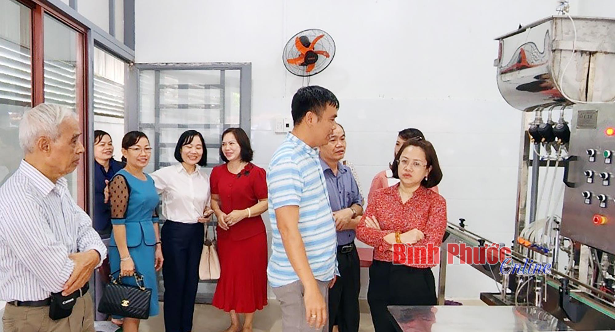 Bà Đỗ Thị Minh Trâm, Phó cục trưởng Cục Công Thương địa phương, Chủ tịch Hội đồng bình chọn sản phẩm công nghiệp nông thôn tiêu biểu khu vực phía Nam (áo hoa đỏ) khảo sát thực tế tại Công ty TNHH MTV Yến sào Nam Phú tại phường Thành Tâm, thị xã Chơn Thành - một trong những doanh nghiệp đăng ký tham gia bình chọn sản phẩm công nghiệp nông thôn tiêu biểu năm 2022