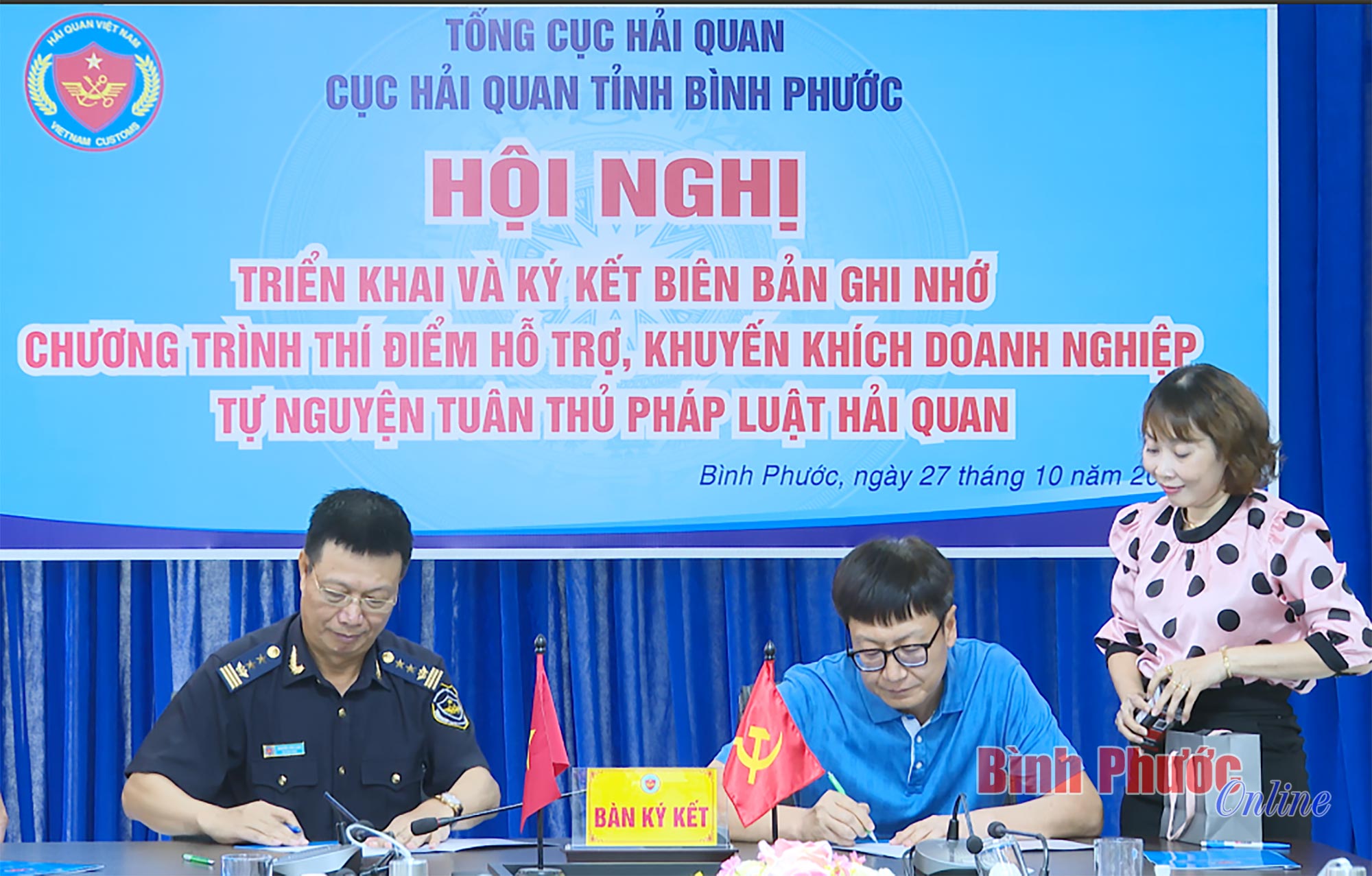 Tại hội nghị, lãnh đạo Cục Hải quan Bình Phước và các doanh nghiệp đã ký kết biên bản ghi nhớ chương trình thí điểm hỗ trợ, khuyến khích doanh nghiệp tự nguyện tuân thủ pháp luật hải quan. Nội dung chính của Bản ghi nhớ là doanh nghiệp sẽ được Hải quan tạo thuận lợi, hỗ trợ, hướng dẫn về các nội dung liên quan đến lĩnh vực áp dụng quản lý rủi ro, tuân thủ pháp luật hải quan và thực hiện thủ tục hải quan đối với hàng hóa xuất - nhập khẩu, quá cảnh. Về phía doanh nghiệp, phải thực hiện cung cấp đầy đủ thông tin, kịp thời, chính xác; hợp tác với Hải quan trong chuyển đổi số; cam kết tuân thủ pháp luật, không thực hiện các hành vi buôn lậu, trốn thuế, gian lận thương mại…