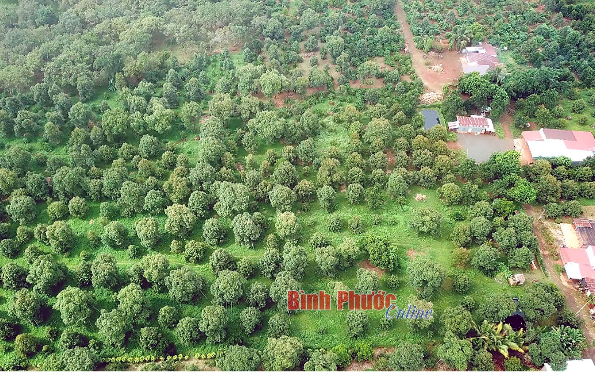 Một góc vườn sầu riêng của HTX cây ăn trái Nông Thành Phát (ấp Đồng Tiến, xã Phước Tân, huyện Phú Riềng, tỉnh Bình Phước) được cấp mã vùng trồng. Ảnh Phương Dung