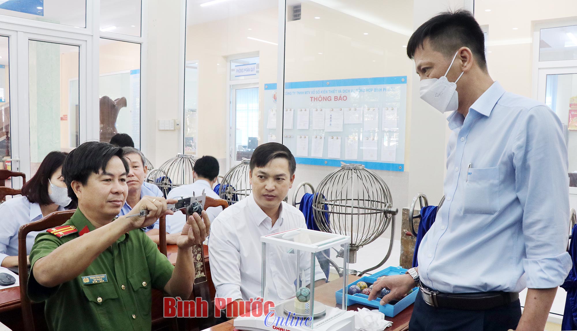 Hội đồng Giám sát xổ số kiến thiết tỉnh Bình Phước đã tiến hành kiểm tra trọng lượng, kích thước từng quả bóng phục vụ cho việc quay số mở thưởng bằng hình thức cân, đo bằng cân điện tử và thiết bị kiểm tra kích thước theo quy định; kiểm tra 7 lồng cầu thổi khí và 6 lồng cầu quay tay dự phòng.