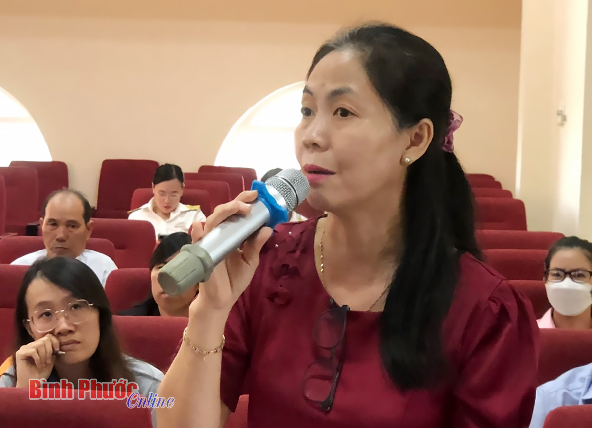 Chị Cao Thị Cẩm Thi, kế toán trưởng Công ty TNHH T.M VINA, Khu công nghiệp Minh Hưng - Hàn Quốc (TX. Chơn Thành) kiến nghị Cục Thuế Bình Phước giải đáp các chính sách liên quan đến Nghị định số 12; mong muốn các cấp xem xét đẩy nhanh việc giải quyết thủ tục pháp lý về xử lý môi trường của doanh nghiệp trong khu công nghiệp