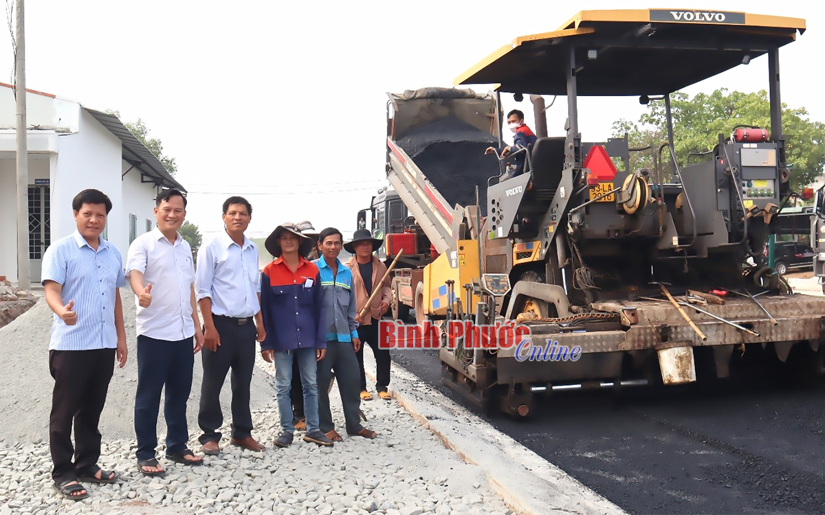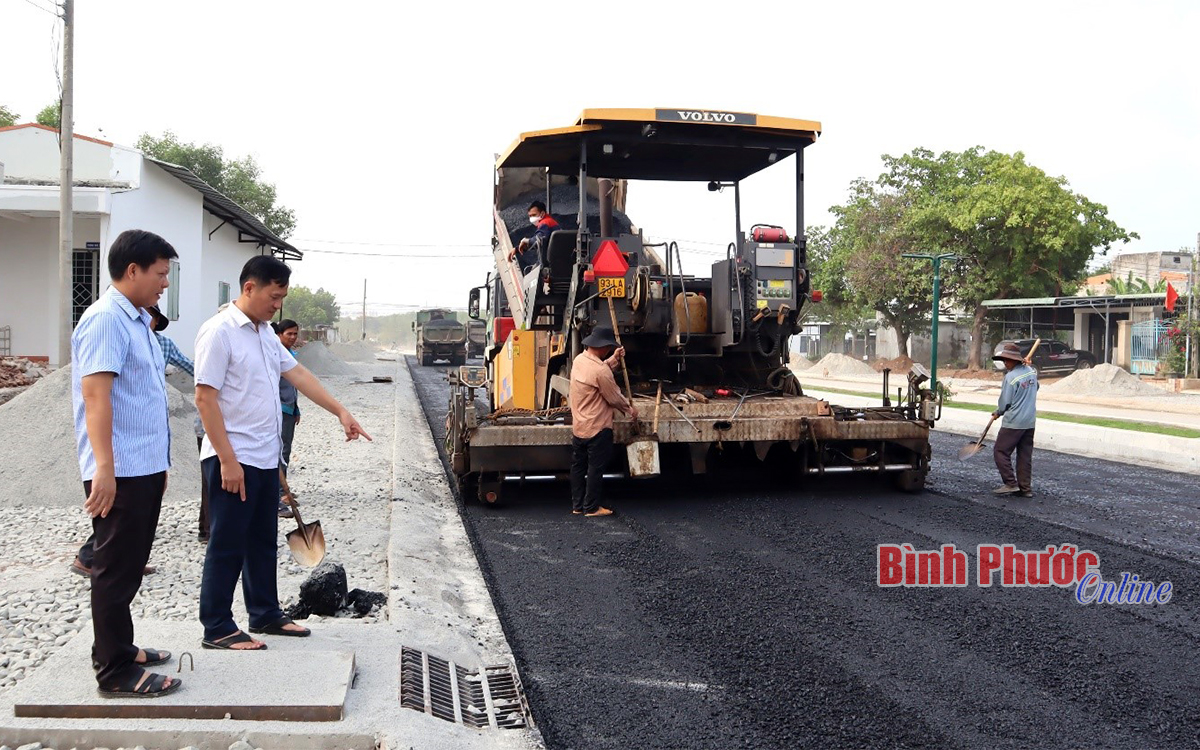 Chủ tịch UBND thành phố Đồng Xoài Nguyễn Minh Bình có mặt tại công trình để kiểm tra và động viên công nhân lao động làm việc xuyên lễ