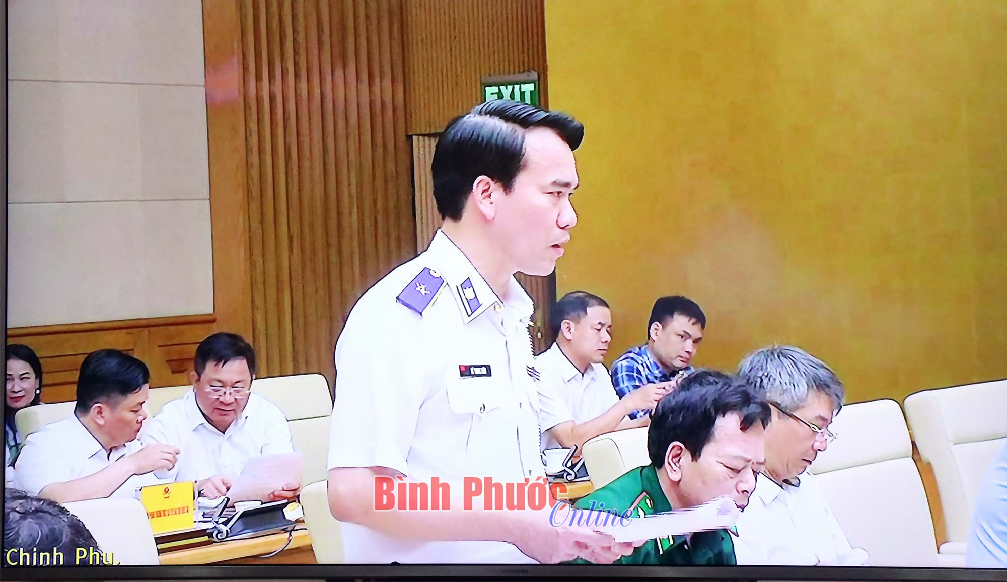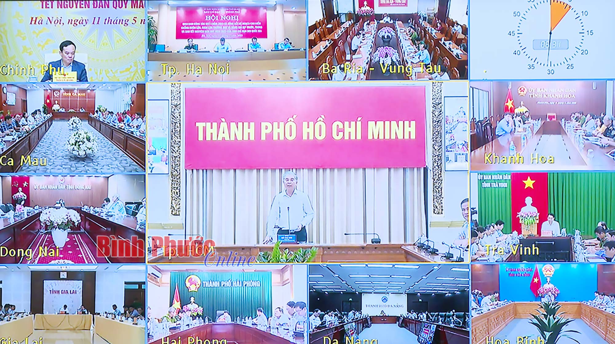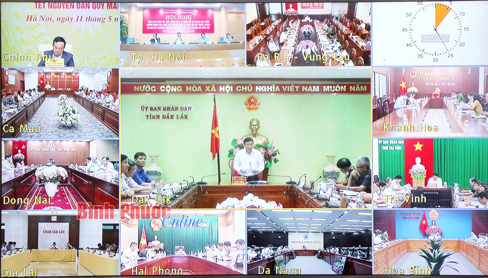 Cục trưởng Cục Quản lý thị trường tỉnh Vũ Sao Sáng và các thành viên Ban Chỉ đạo 389 tỉnh tham dự hội nghị tại điểm cầu Bình Phước