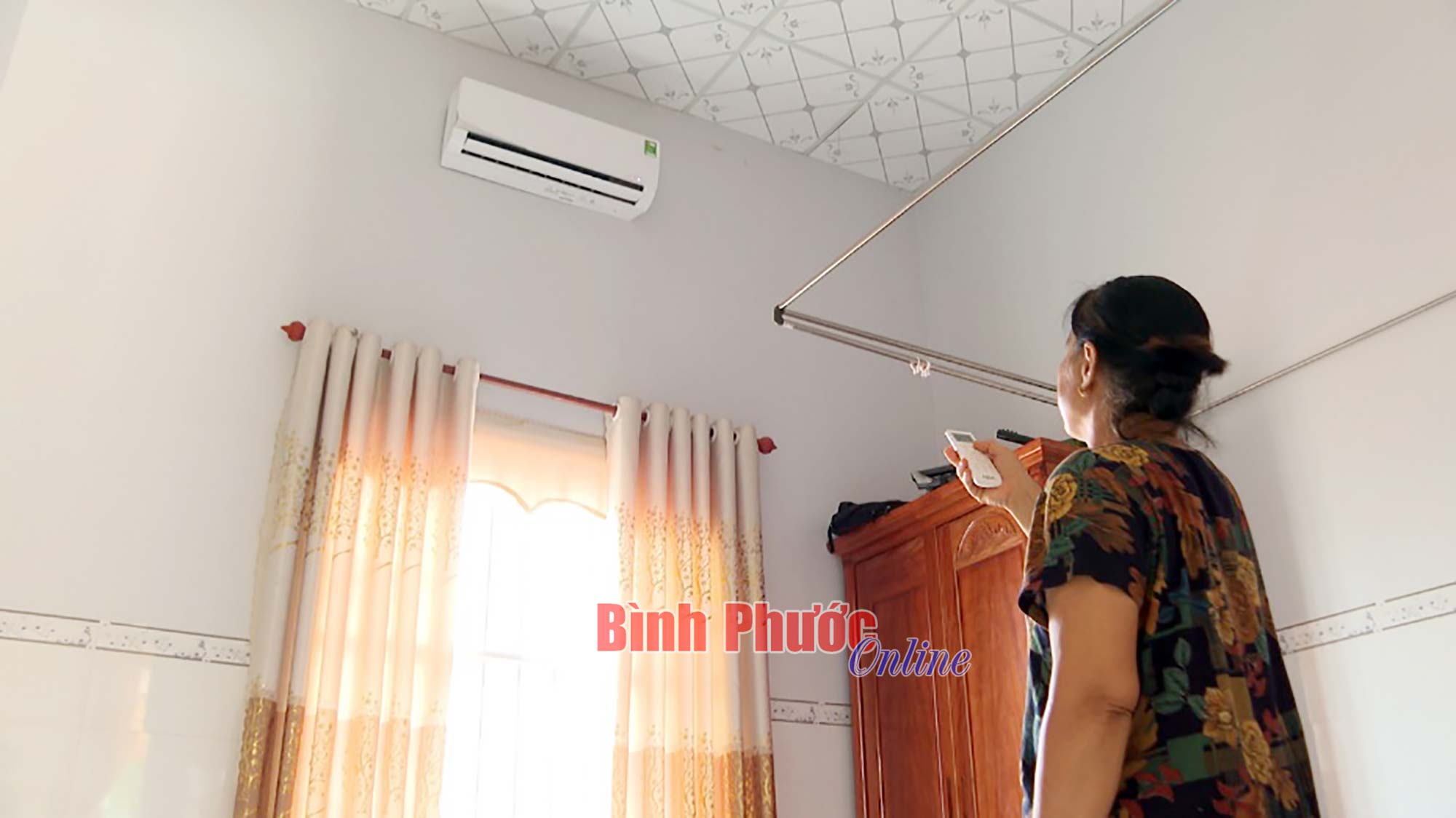 Bà Nguyễn Thị Đích ở thôn Tân Phú, xã Bù Nho, huyện Phú Riềng chia sẻ: Những ngày gần đây, nắng nóng liên tục, gia đình sử dụng quạt máy, điều hòa nhiệt độ nhiều nhưng để tiết kiệm điện, khi nào đi ngủ mới mở máy lạnh, đến nửa đêm thì tắt chuyển sang quạt. Riêng quạt máy, tivi và các thiết bị khác không sử dụng thì rút dây nguồn. Nhờ vậy, những tháng nắng nóng tiền điện chi trả chỉ dao động trên dưới 600 ngàn đồng/tháng.