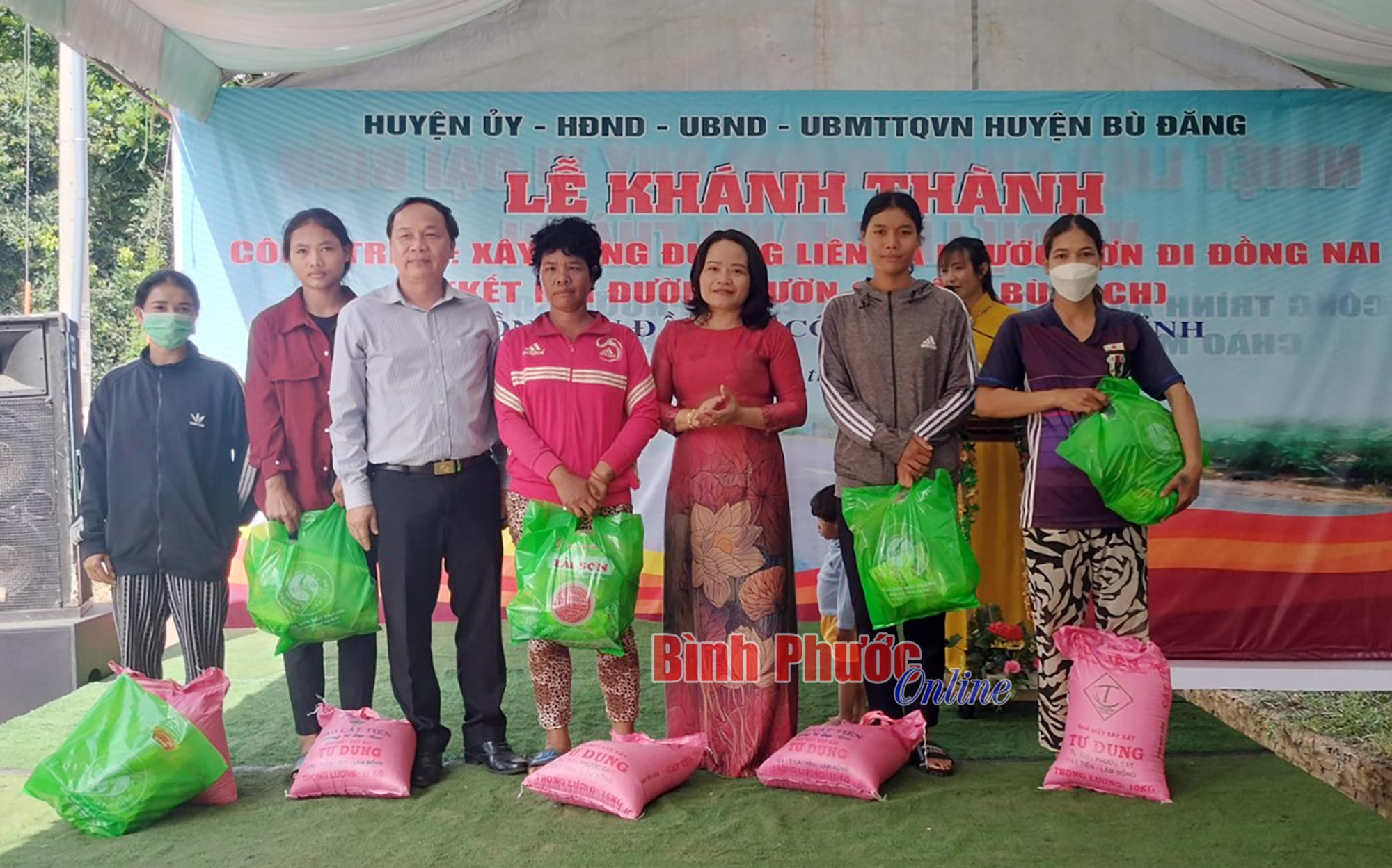 Lãnh đạo huyện Bù Đăng và các xã, thị trấn tặng quà cho bà con dân tộc thiểu số nghèo tại buổi lễ