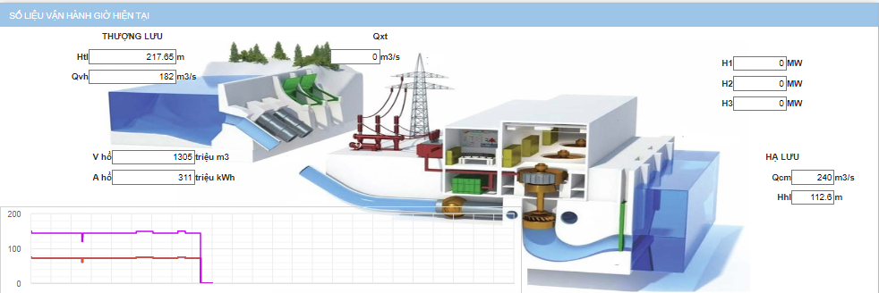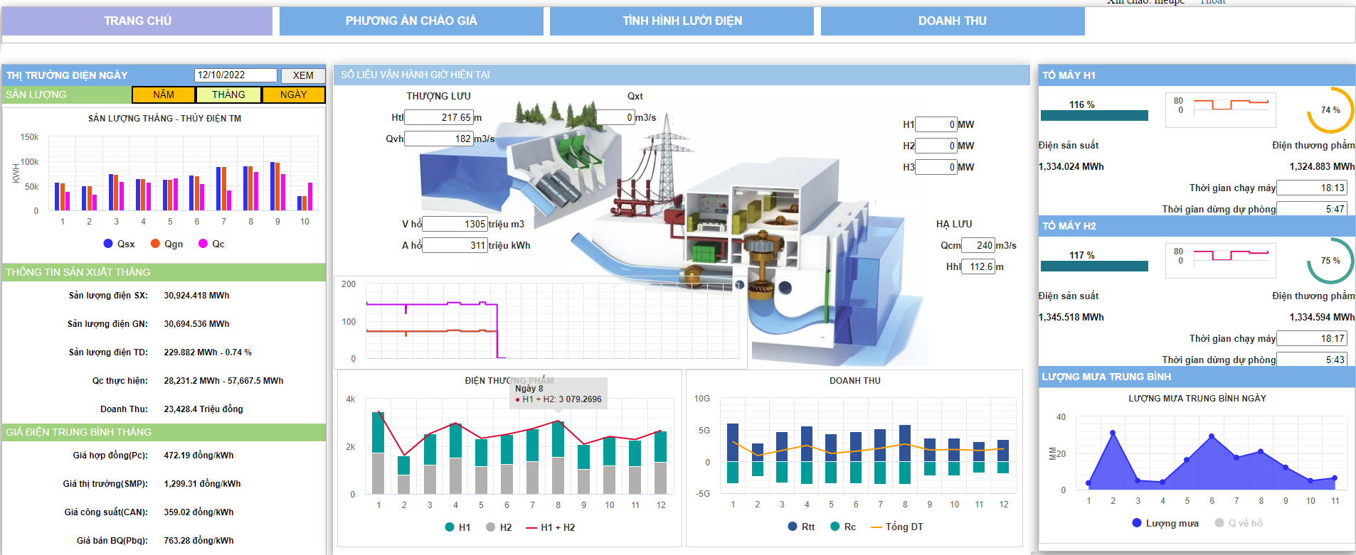 Giao diện theo dõi các tham số phục vụ sản xuất điện theo thời gian thực