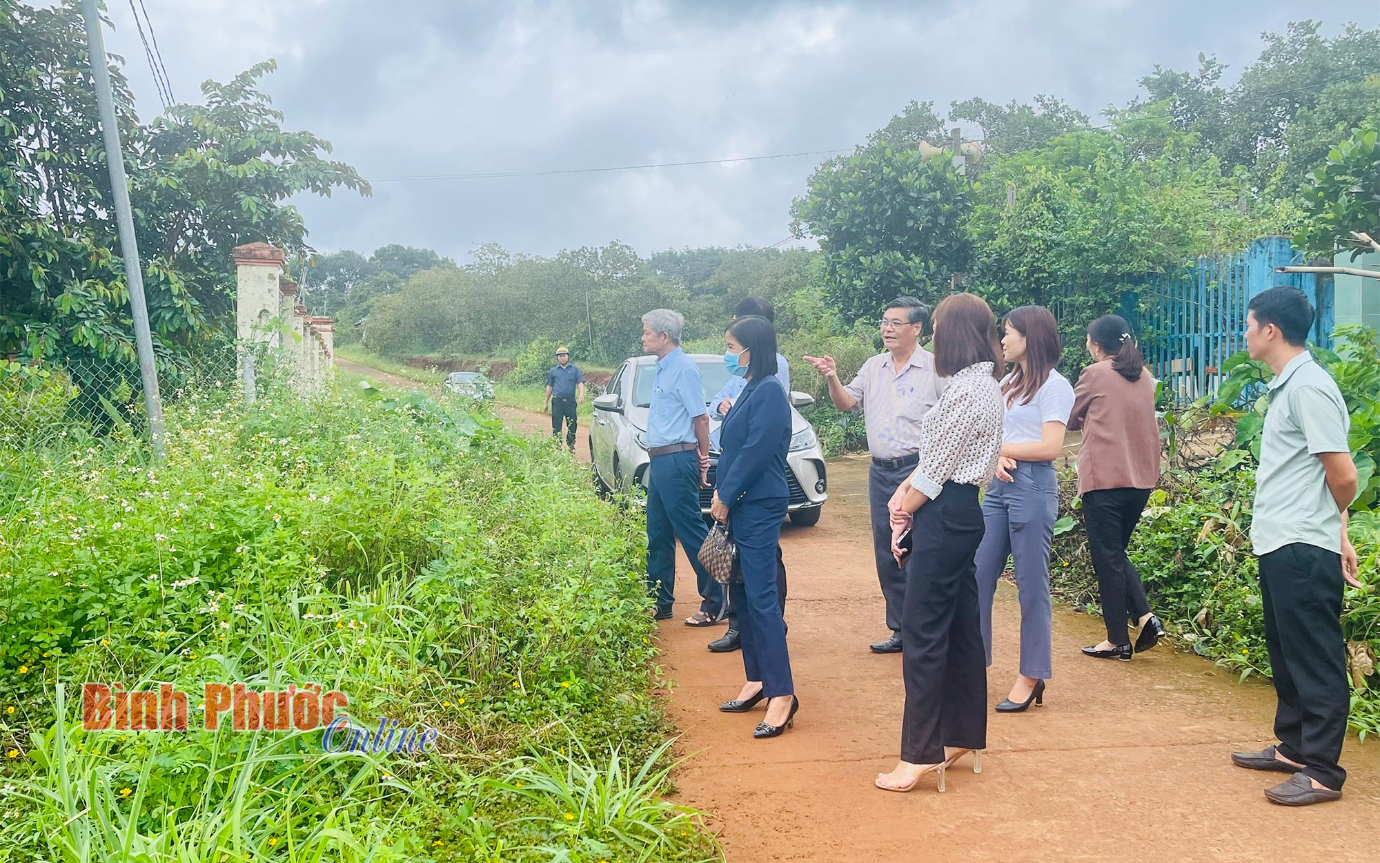 Đoàn khảo sát hạng mục công trình làm hàng rào nhà văn hóa thôn 10, xã Thống Nhất