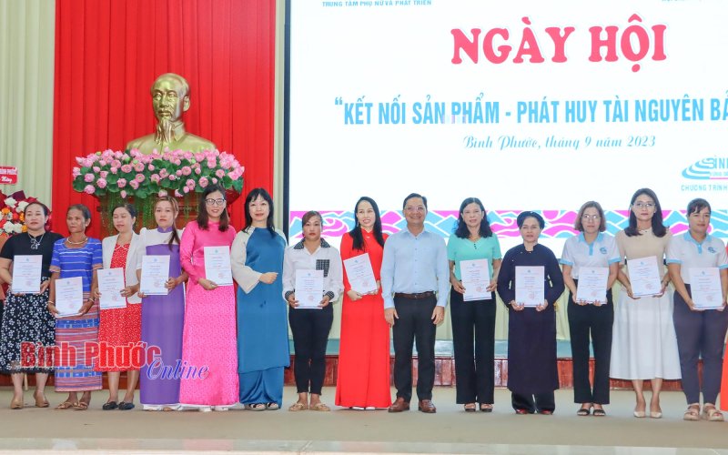 15 ý tưởng, dự án đoạt giải cuộc thi “Phụ nữ khởi nghiệp - phát huy tài nguyên bản địa” năm 2023BPO - Trong chuỗi hoạt động ngày hội “Kết nối sản phẩm - Phát huy tài nguyên bản địa” năm 2023, diễn ra hai ngày 18 và 19-9, Ban giám khảo cuộc thi đã trao giải cho 15 ý tưởng, dự án của phụ nữ trên địa bàn tỉnh Bình Phước.