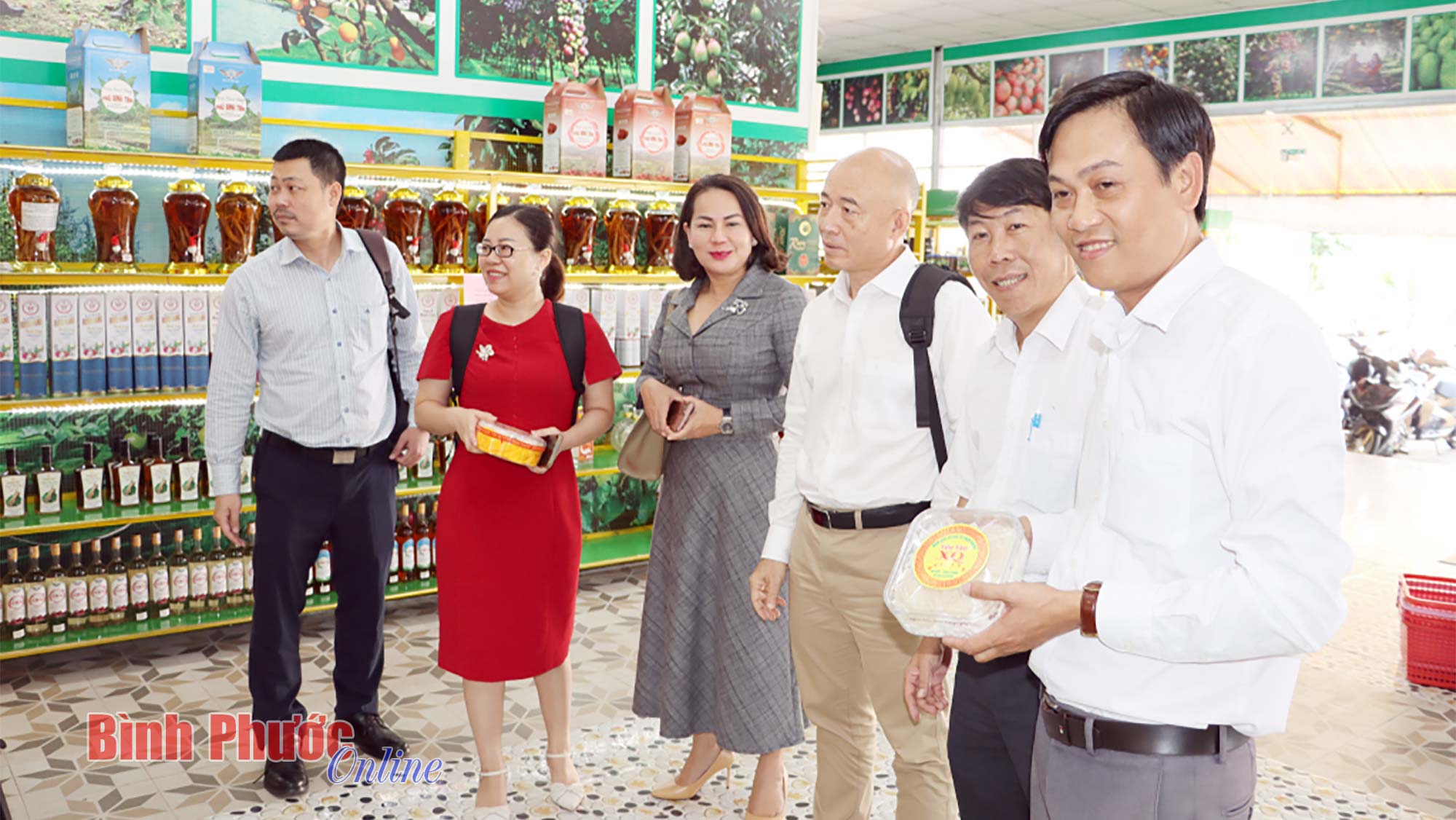 Các đại biểu tham quan gian trưng bày sản phẩm của HTX Bom Bo Bình Phước