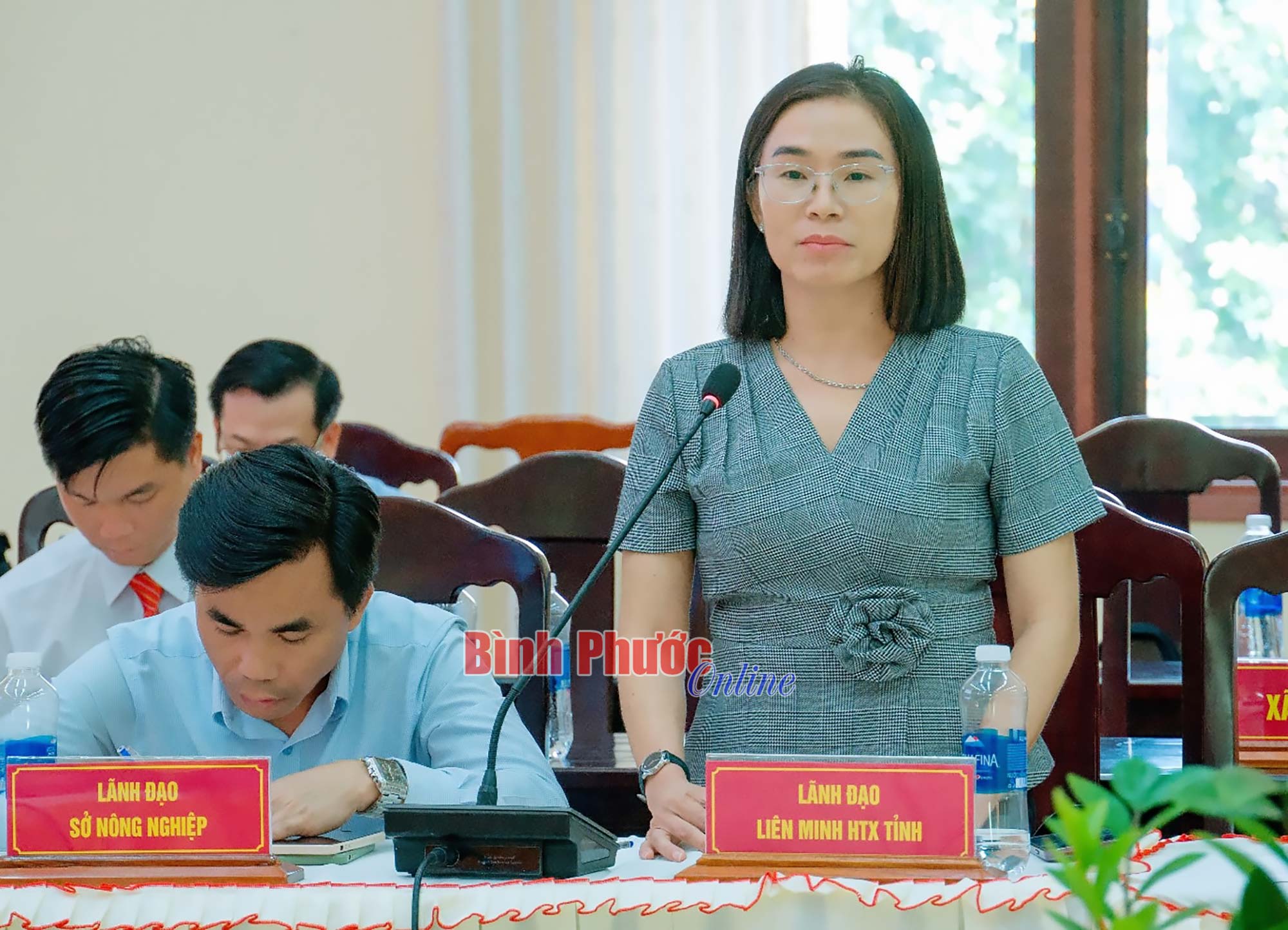 Phó Chủ tịch Liên minh Hợp tác xã tỉnh Nguyễn Thị Hồng Nhung phát biểu tại hội nghị