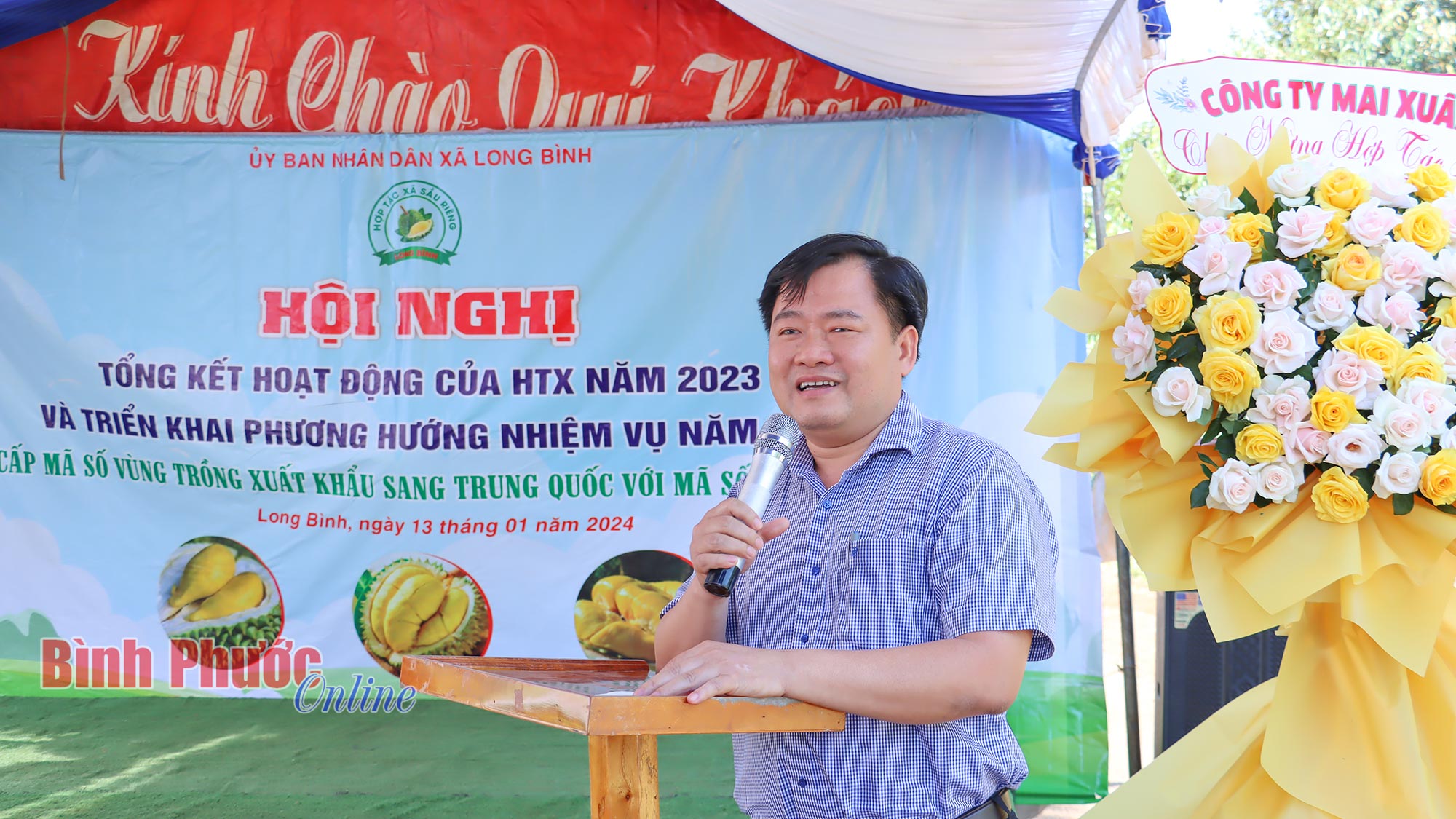 Phát biểu tại hội nghị, Tỉnh ủy viên, Bí thư Huyện ủy Phú Riềng Nguyễn Thị Xuân Hòa cho rằng: HTX Sầu Riêng Long Bình dù còn trẻ nhưng đã và đang đi đúng hướng, đạt hiệu quả thực tế, từ đó góp phần vào sự phát triển kinh tế - xã hội của địa phương. Thời gian tới, HTX chú trọng tăng cường liên kết trong và ngoài tỉnh với các đơn vị HXT, doanh nghiệp khác; nâng cao năng lực lãnh đạo quản lý của HTX dưới sự định hướng của chính quyền. Tăng cường tham gia các lớp tập huấn cho ban quản lý, thành viên HTX để nâng cao năng lực, tầm nhìn trong quản lý sản xuất kinh doanh.