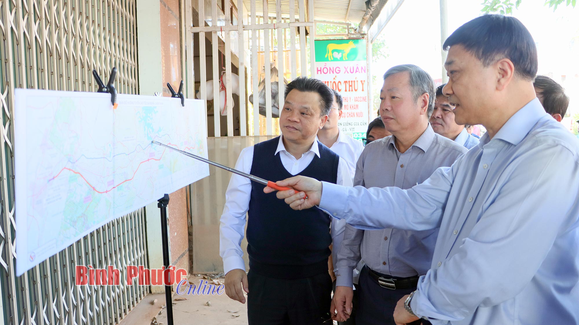 Trong buổi sáng, đoàn công tác đã khảo sát thực địa tại một số điểm dự án đi qua gồm: khu vực ngã ba chợ Minh Hưng, cầu 38 thuộc xã Minh Hưng và khu vực giáp ranh giữa xã Đức Liễu và xã Thống Nhất thuộc huyện Bù Đăng. Đoàn cũng đến khảo sát tại điểm cuối cao tốc và đoạn tuyến kết nối từ nút giao với cao tốc TP. Hồ Chí Minh - Chơn Thành đến đường Hồ Chí Minh đoạn Chơn Thành - Đức Hòa dài 2km.