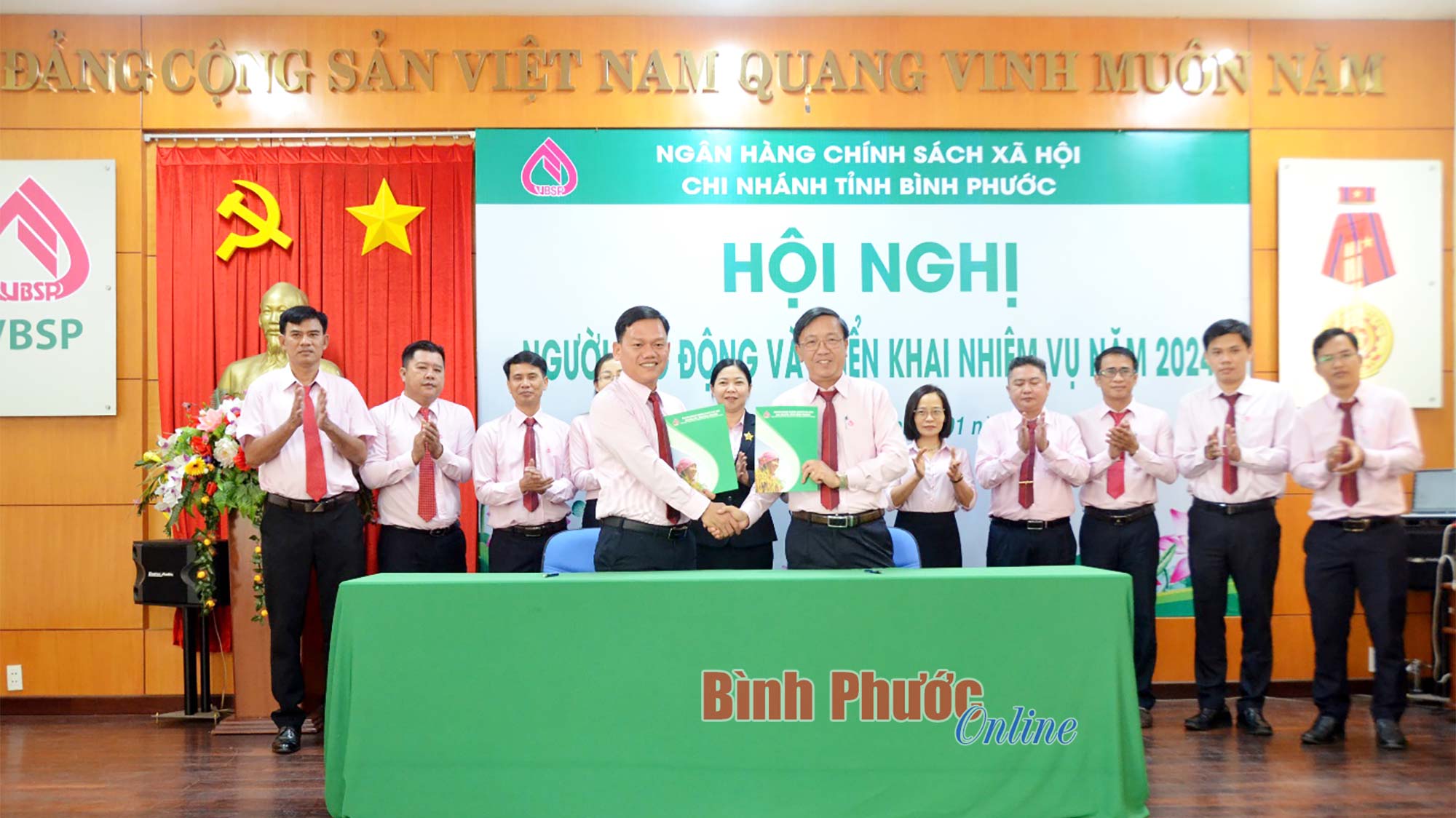 Tại hội nghị, cùng với hoạt động đối thoại với người lao động, Ngân hàng CSXH chi nhánh tỉnh Bình Phước cũng đã phát động và ký kết giao ước thi đua phấn đấu thực hiện thắng lợi nhiệm vụ năm 2024.