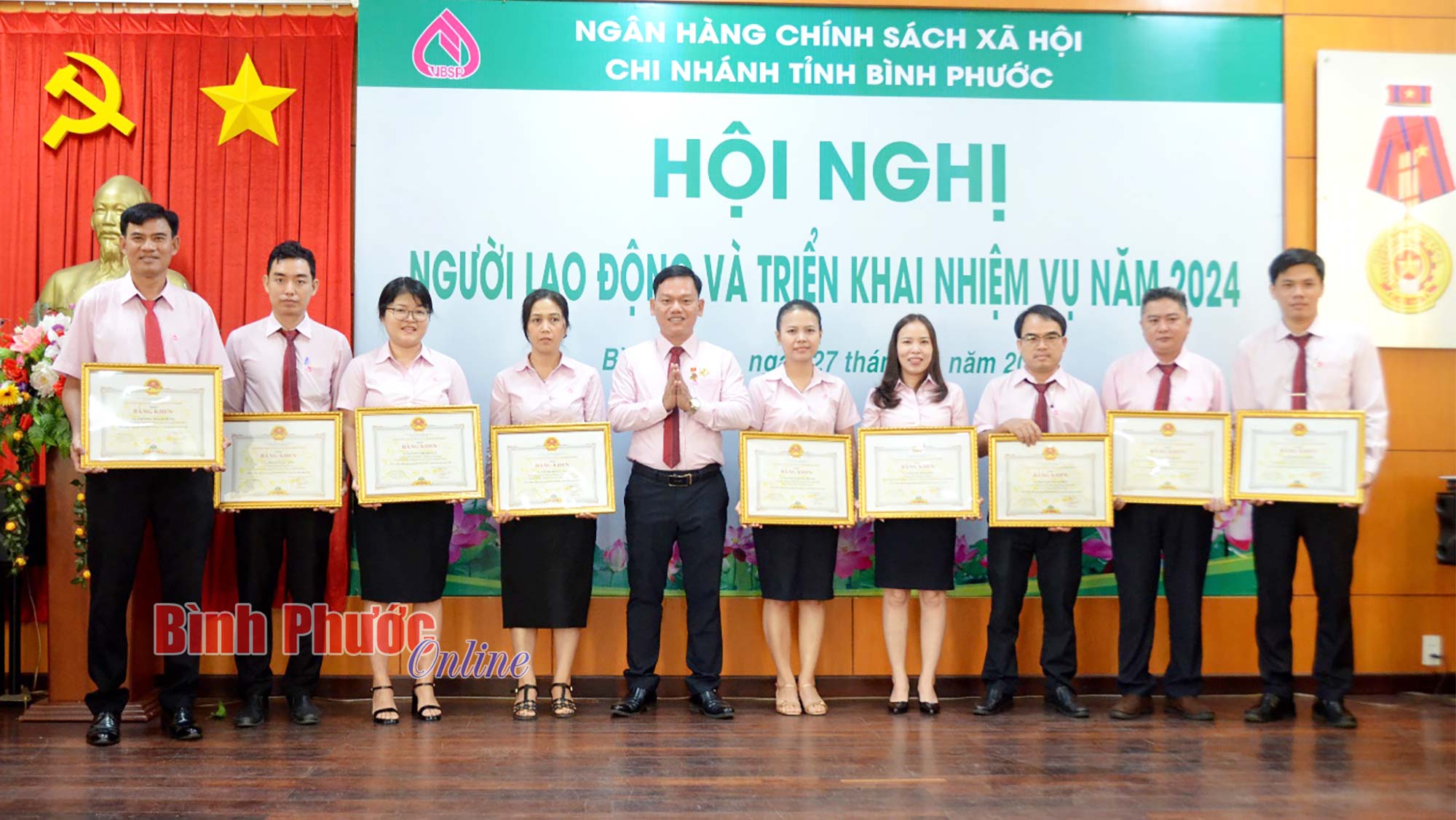 Dịp này, Ngân hàng CSXH chi nhánh tỉnh Bình Phước đã trao 6 kỷ niệm chương vì sự nghiệp ngân hàng Việt Nam và kỷ niệm chương vì sự nghiệp xây dựng tổ chức Công đoàn; trao bằng khen của Thống đốc Ngân hàng Nhà nước Việt Nam và UBND tỉnh Bình Phước cho 10 tập thể, 31 cá nhân có nhiều thành tích trong hoạt động tín dụng chính sách năm 2023.