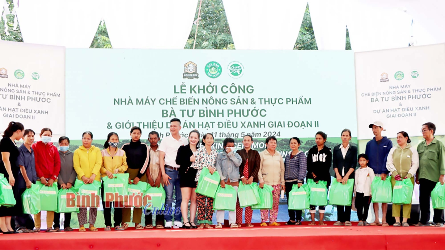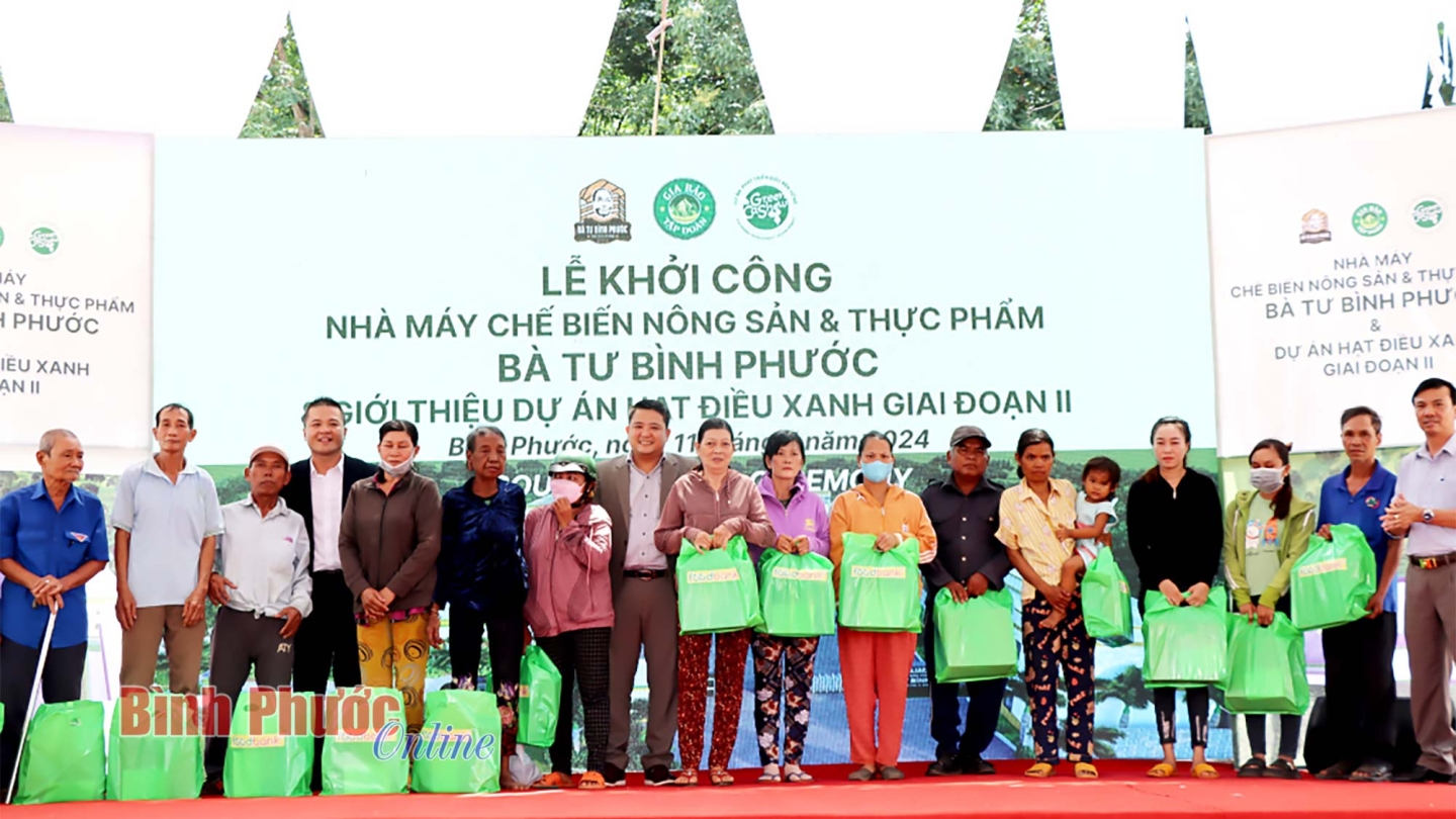 Tại buổi lễ, Công ty Cổ phần Tập đoàn Gia Bảo đã tiến hành ký kết thỏa thuận hợp tác chiến lược của Dự án phát triển điều bền vững với các doanh nghiệp. Dịp này, Công ty Cổ phần Tập Đoàn Gia Bảo, Công ty Xuất nhập khẩu Quốc tế Việt Dung và Foodbank Việt Nam trao tặng 50 phần quà cho các hộ gia đình có hoàn cảnh khó khăn, mỗi phần quà trị giá 500 ngàn đồng.