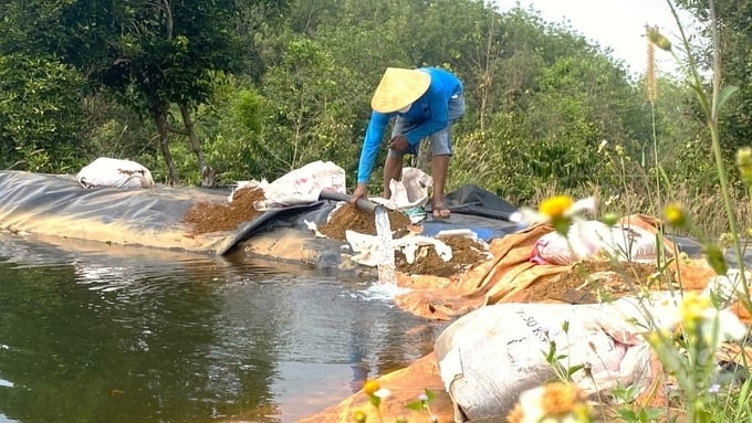 Anh Mai Hiền Huy đầu tư các ao lớn để tích trữ nguồn nước tưới trong cả mùa khô. Ảnh: Trần Trung