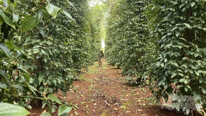 Vườn tiêu của ông Nguyễn Văn Luận, thành viên HTX tiêu hữu cơ xã Đắc Ơ, luôn căng đầy nhựa sống. Ảnh: Trần Trung