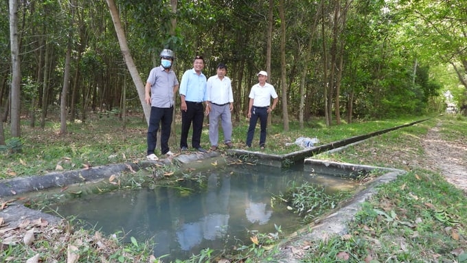 Ông Trần Quang Vinh - Chi Cục trưởng Chi cục Thủy lợi tỉnh Tây Ninh (thứ 2 từ phải sang) cùng đoàn công tác đi kiểm tra hệ thống kênh mương thủy lợi. Ảnh: Trần Trung