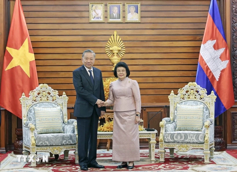 Theo đặc phái viên, trong khuôn khổ chuyến thăm cấp Nhà nước tới Vương quốc Campuchia, sáng 13-7, Chủ tịch nước Tô Lâm đã hội kiến Chủ tịch Quốc hội Campuchia Khuon Sudary.