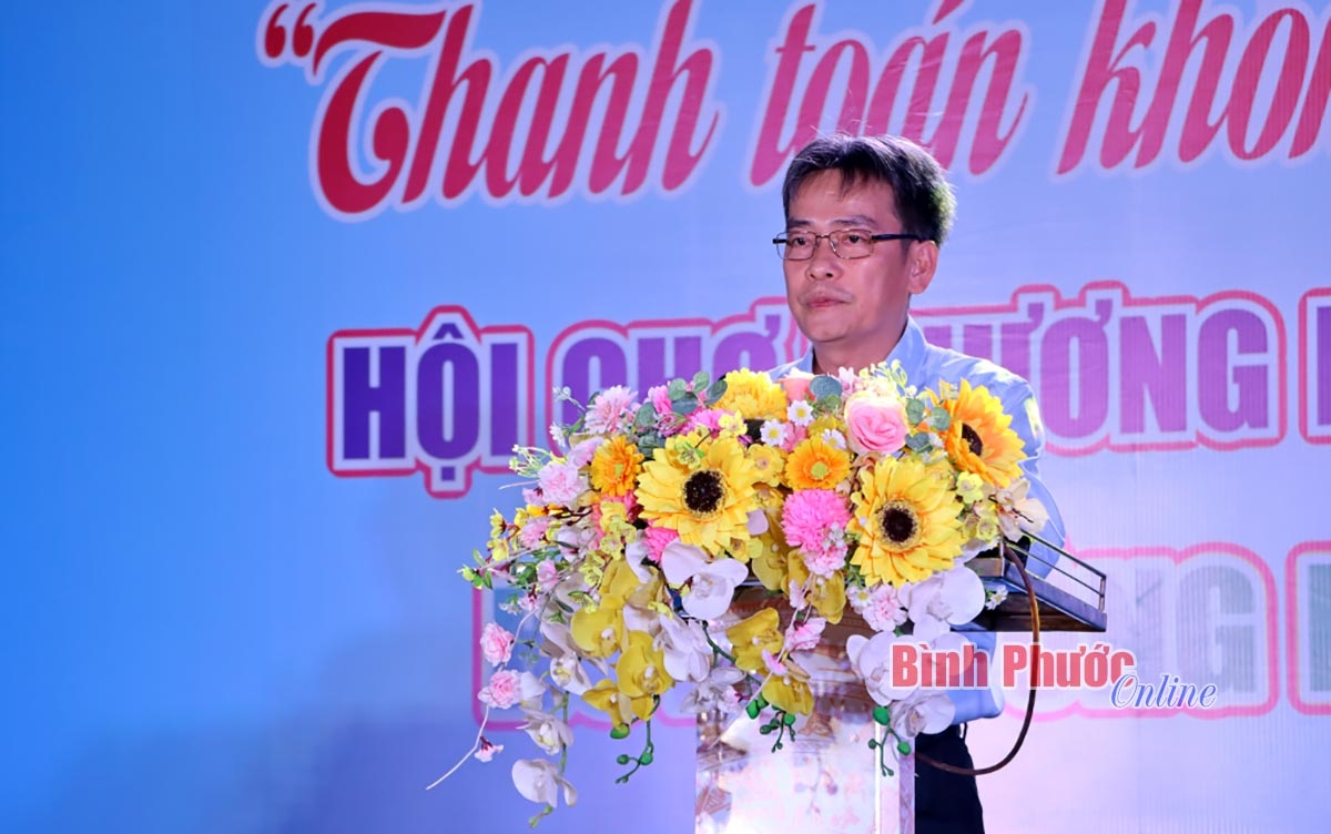 Ủy viên Ban Thường vụ Huyện ủy, Phó Chủ tịch UBND huyện Đồng Phú Nguyễn Thanh Phương phát biểu khai mạc ngày hộiPhát biểu tại lễ khai mạc, ông Nguyễn Thanh Phương, Ủy viên Ban Thường vụ Huyện ủy, Phó Chủ tịch UBND huyện Đồng Phú cho biết: Hiện nay, việc thanh toán không dùng tiền mặt dần trở nên phổ biến với nhiều tầng lớp nhân dân, từ nhân viên văn phòng, tiểu thương đến những người lao động tự do, từ hoạt động thương mại đến dịch vụ công, từ thành thị đến nông thôn… Việc triển khai dịch vụ thanh toán không dùng tiền mặt có ý nghĩa hết sức quan trọng đối với địa phương, không chỉ giúp người dân được trải nghiệm những hình thức thanh toán hiện đại, mà còn tạo tiền đề để xây dựng công dân số, tiến tới xây dựng xã hội số, chính quyền số theo lộ trình chuyển đổi số quốc gia.