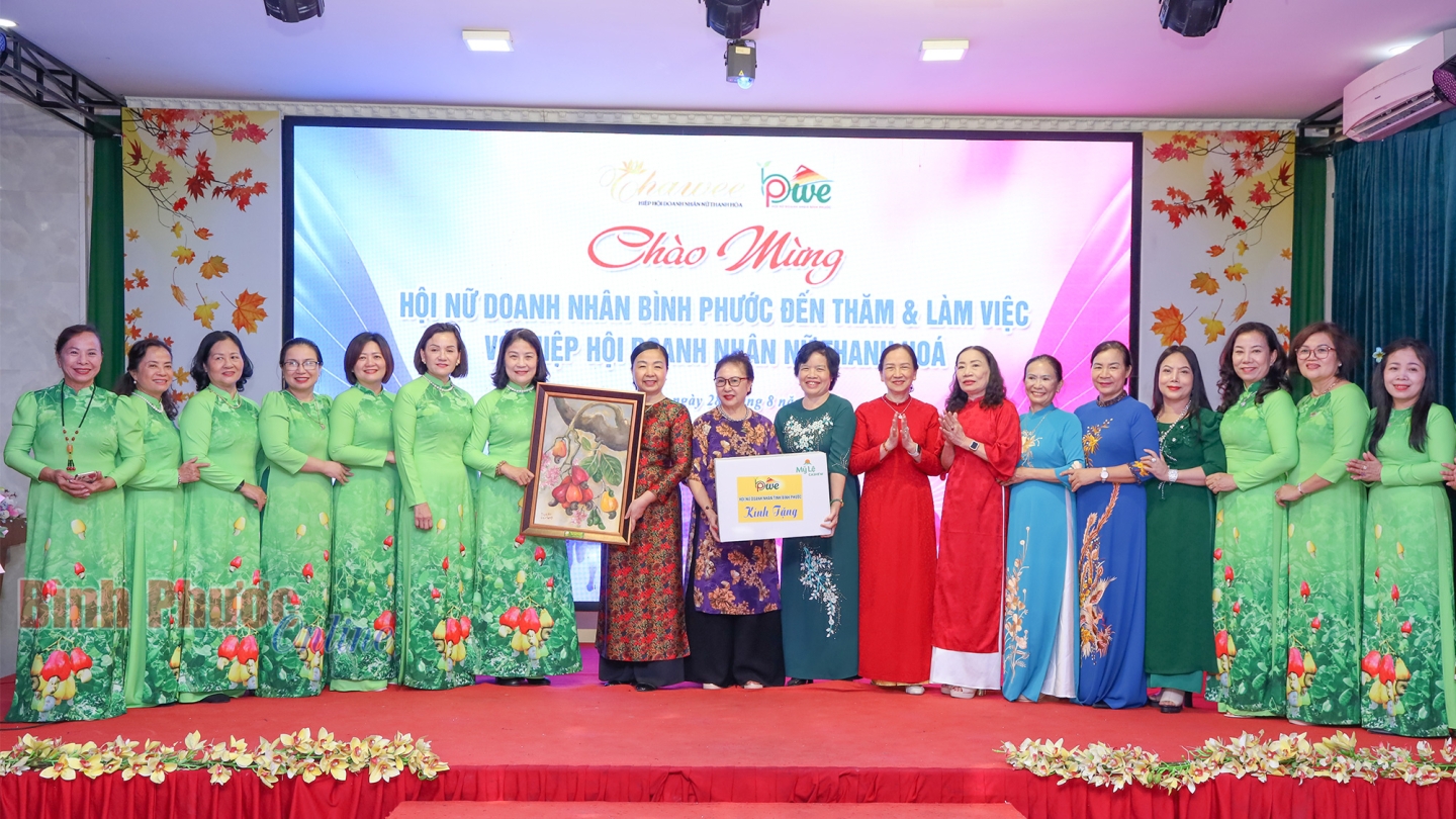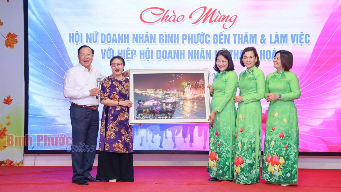 Hội Nữ doanh nhân Bình Phước tặng tranh lưu niệm cho Hiệp hội Doanh nhân nữ Thanh Hóa