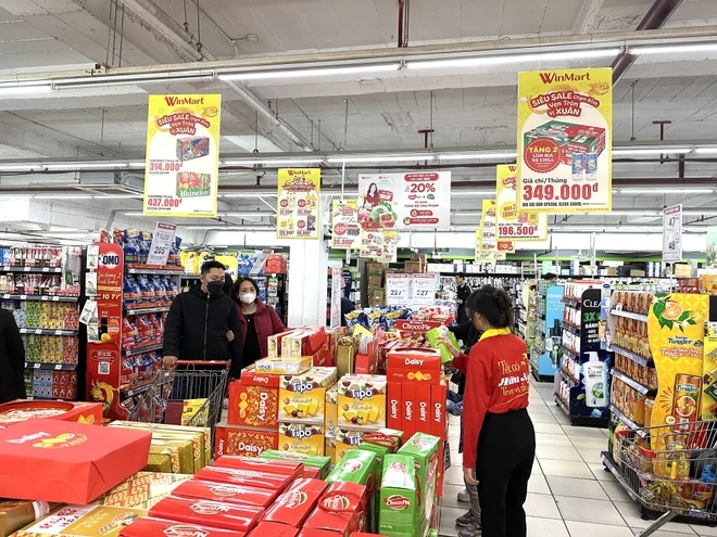 Các doanh nghiệp tăng dự trực các mặt hàng thiết yếu phụ vụ mua sắm dịp Tết. (Ảnh: Đức Duy/Vietnam+)