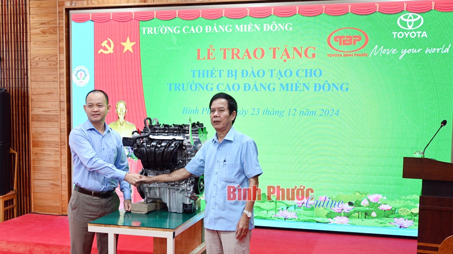 Công ty ô tô Toyota Việt Nam đã ủy quyền cho ô tô Toyota Bình Phước trao tặng động cơ Avanza cho Trường Cao đẳng Miền Đông