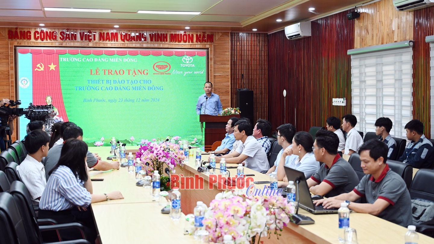 Lãnh đạo Trường Cao đẳng Miền Đông và ô tô Toyota Bình Phước tại lễ trao tặng thiết bị