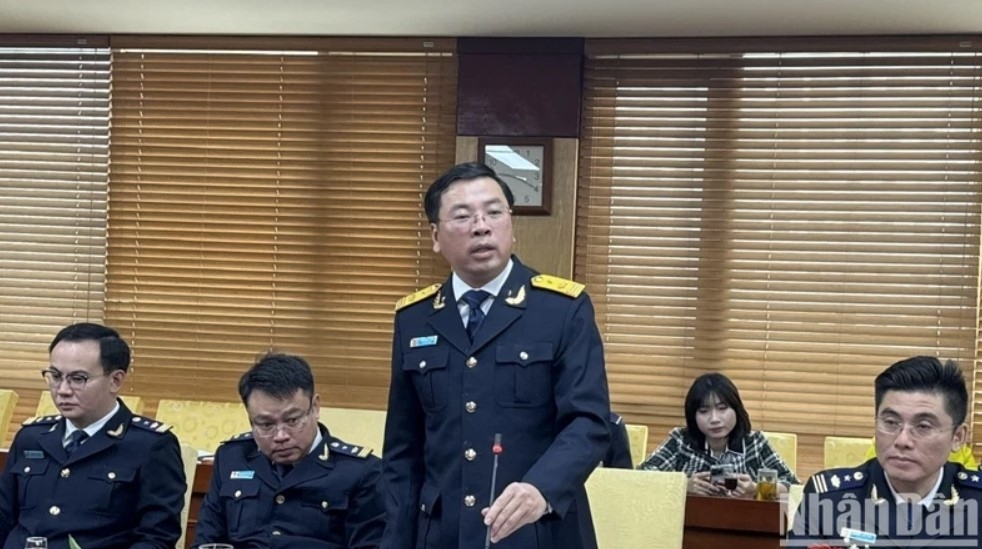 Phó Tổng cục trưởng Tổng cục Hải quan Trần Đức Hùng thông tin tại hội nghị. (Ảnh: TRUNG HƯNG)
